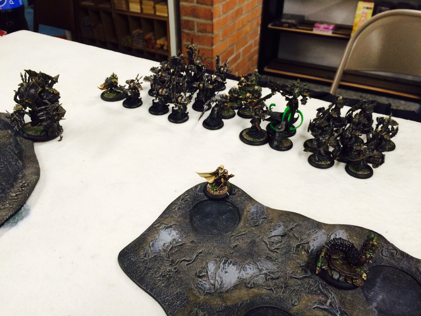 The Cauldron and a poorly-chosen charge target were the two big mistakes for me in the match. I engaged the beast side pretty well, and panicked the Croak Raiders who took multiple turns to rally. I let too many little shredders spawn from the Cauldron, though, as my ranged support was on the wrong side of the table. And the Earthborn ended up nearly useless for the match because I charged a poor target that left him out of position to really make much impact.