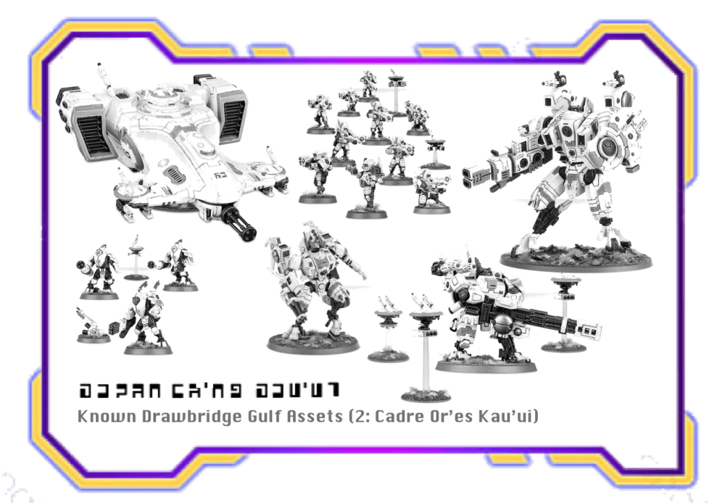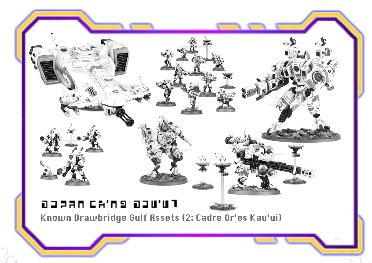Greetings T’au settlers and their Gue’vesa assistants, as well as the native Gue’la, Tarellians, and Laer Refugees of the Drawbridge Gulf cluster of planets. Although the region of space that the trio of planets you share is relatively distant from other celestial bodies, know that you all are within the comforting embrace of the Greater Good. We’ve already connected with some of you, and know that others will soon learn of what our Empire brings in good fortune and prosperity.