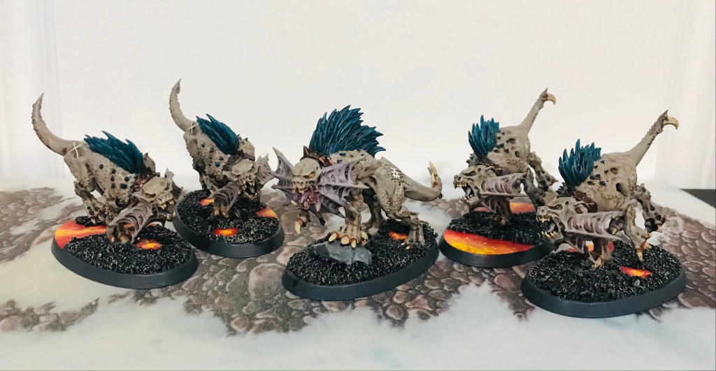 All told I’m pretty pleased with all the painting progress I got in on Khorne stuff. It makes a fun balance to the Night Lords (see below).