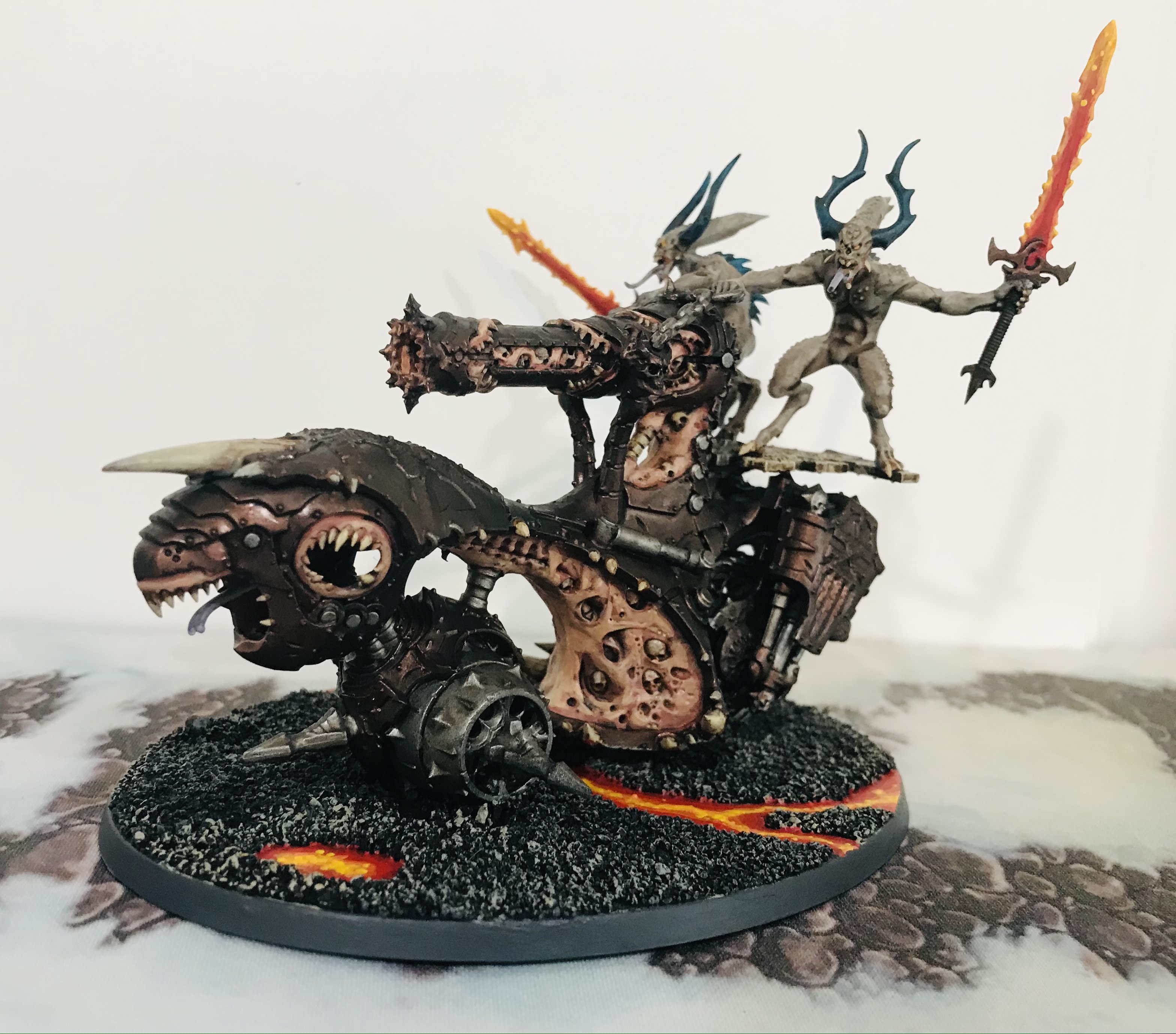 Well, I think I have finally settled on what my force for “Invasion of Terra Two: The Emperor’s Thru” will be. I had been leaning toward Death Guard (as I do have a start to that force done), but realized from discussion with other players who will be a part of that event that we’ve got a really huge Nurgle presence already ready to assault the walls. So rather than double-up things, I wanted to spread out a bit more. I had known that I wanted to add a Khorne contingent to my army list, as there was much talk of a Host of Bloodthirsters assaulting the Throne room. So I’ve been going crazy on the Khorne side of things. Yet I didn’t want just daemons, as while I’ll have at least some hordes of troops with the daemons I also wanted to have lines of warriors and rows of siege tanks to break down the walls (envisioning those sorts of battles you see in the art of just lines of war).