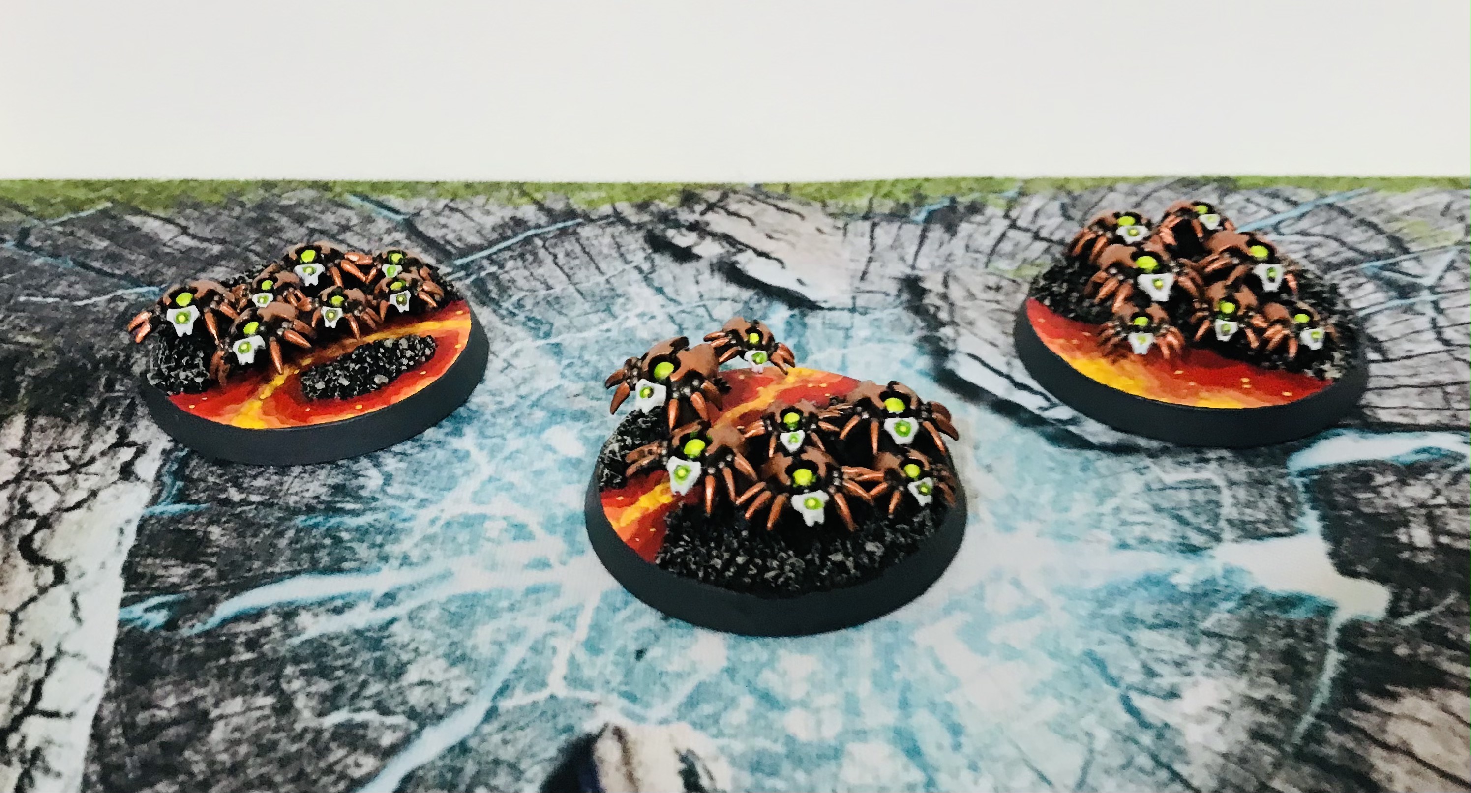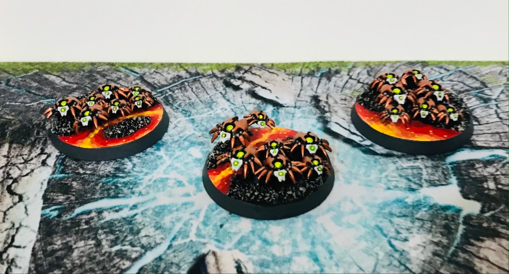 Central to a good Necrons force is–of course–the Scarab Swarms. I added three more to my force this past week. Not fast progress, but was good to get them done. They’re great for screening units, for taking objectives, and for soaking mortal wounds from psychic-heavy armies. All-around awesome, and they’re cute to boot.