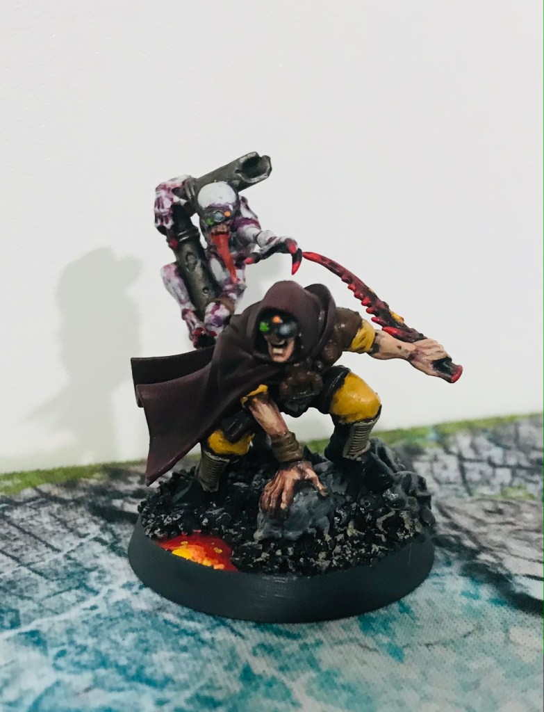 More work these past three weeks on the Genestealer Cult, which resulted in me reaching 25 PL of models fully painted (provided I use a unit of general Cultists I had painted before as a Brood Brother Squad). That let me get in a paired game of Kill Team with 40k against my friend Colton’s Salamanders. It was a burning flaming loss for the Genecult, but still was good to get the first one in. It’s been fun exploring the models and paint at least.
