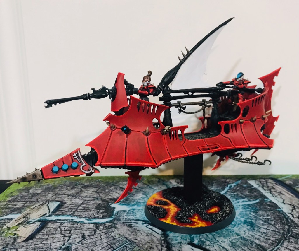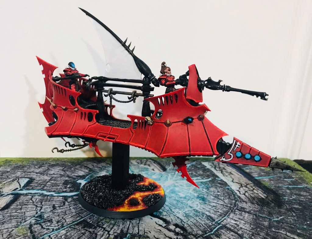 I also got two Ravagers done to tabletop quality for the event, but I still need to put some highlights and finishing touches on them, so I’ll save those photos for the next update. I did however get so inspired by the progress that I completed a Drukhari Archon as well.