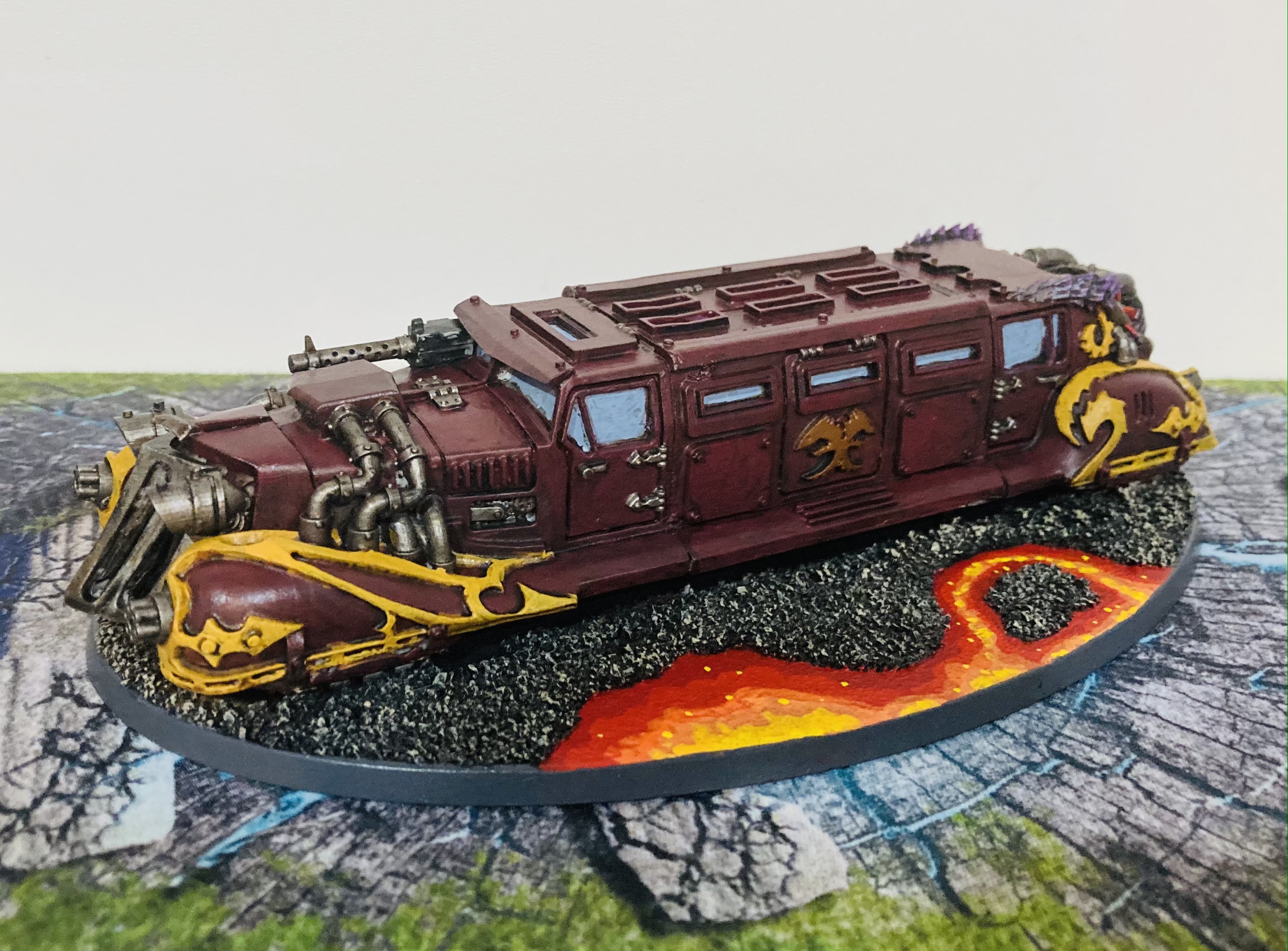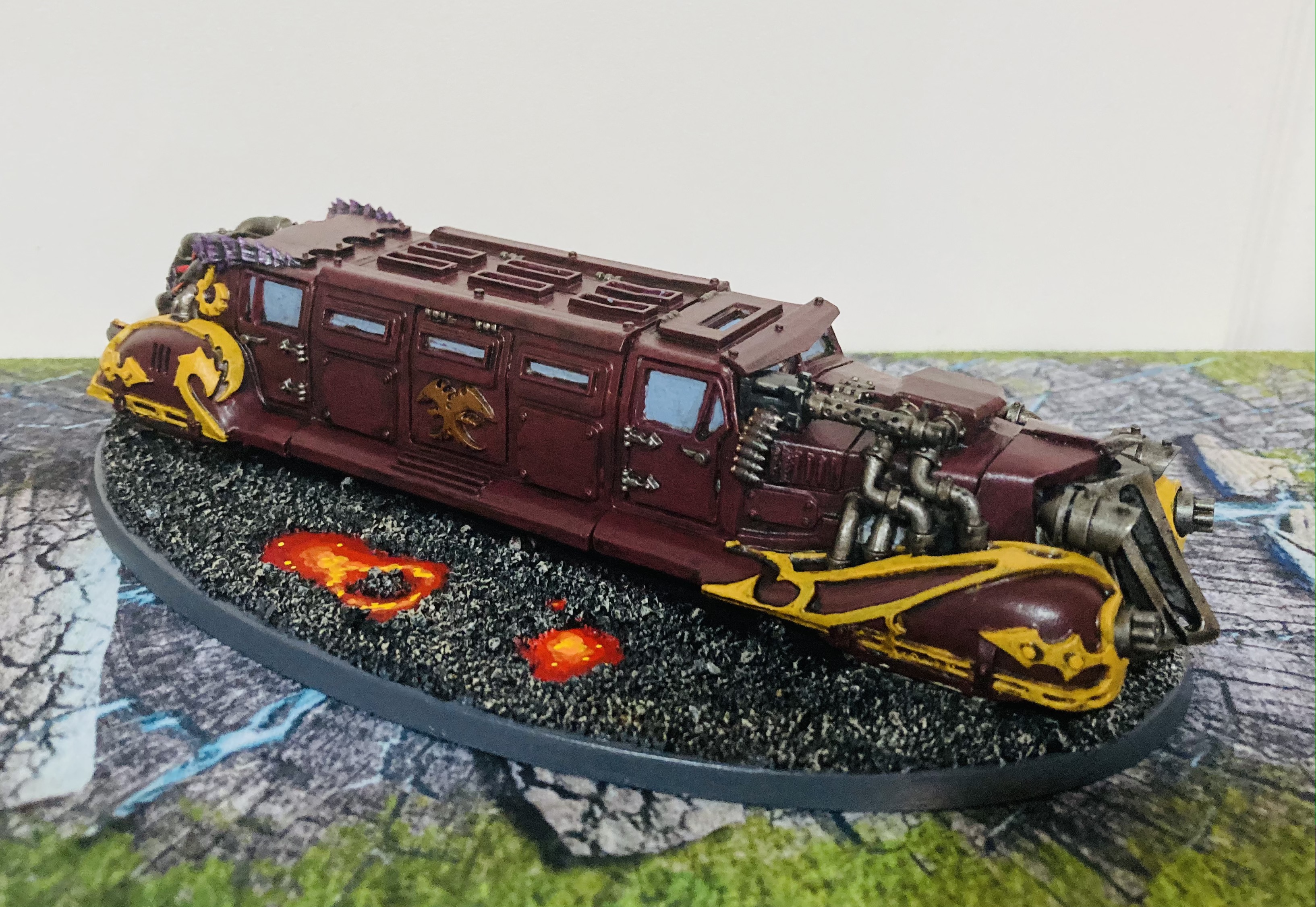 Enter: the Wargames Exclusive “Genetic Cult Civilian Limo”. The model is great, and for size comparison that oval base underneath it is a bit larger than the ones I use on my other Cult vehicles (it’s longer than the Flyer base). I loved painting up the model, and I’m really pleased with how it turned out. I’m still not convinced that Genestealer Cult is going to be a long-term force for me–but I’m having some fun with painting pieces now.