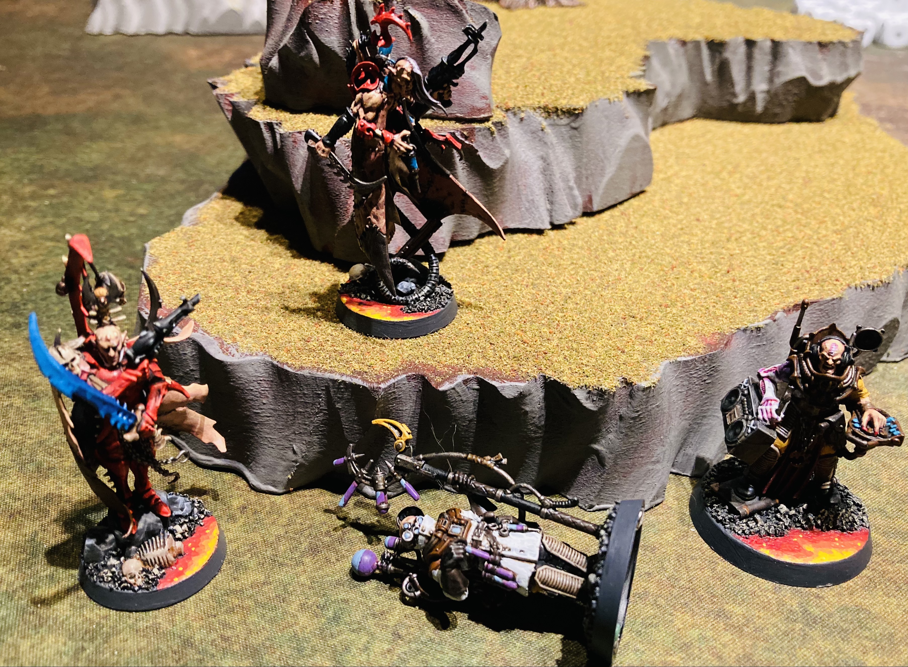 Vÿr had his forces stay at range best he could, even with his recent swell of bravado. These mon-keigh were almost no longer human, and worse yet, their bodies were so torn and broken that the damage done to them did nothing to help the Drukhari’s own souls in feeling release. At times clusters of splinter fire from the Venom and the Kabalites didn’t even seem to register with them when they pierced armor and shredded skin.