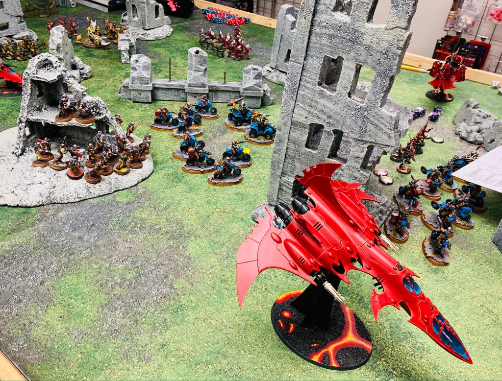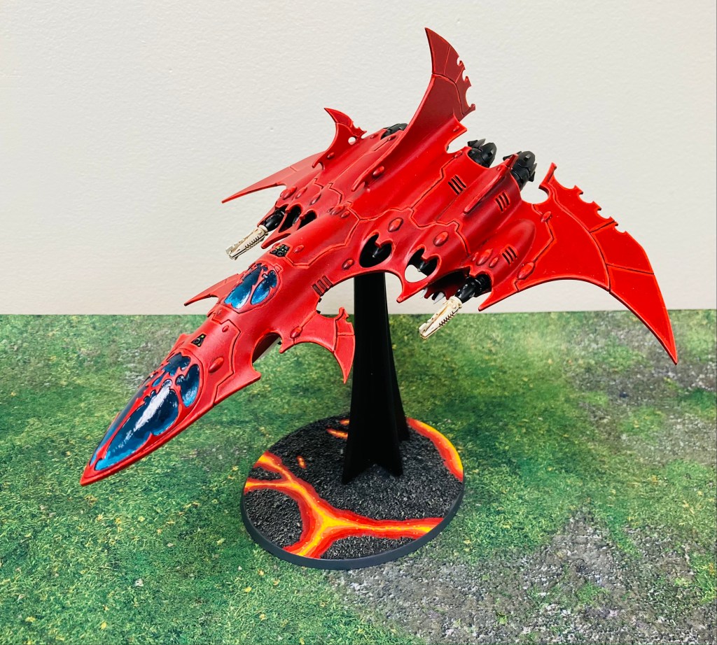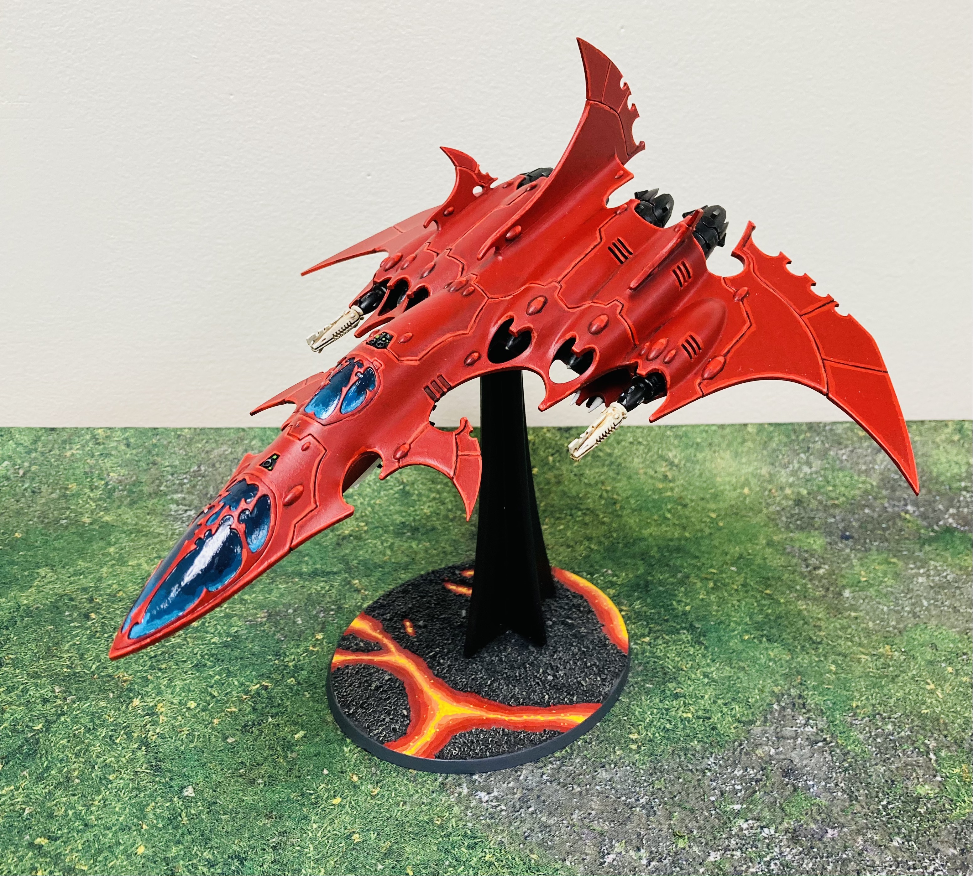 Added two big things that have both been on my painting table for a while: 10 more Kabalite Warriors to round out a full squad of 20 as a firebase, and the Voidraven Bomber I’ve been mucking with for ages.
