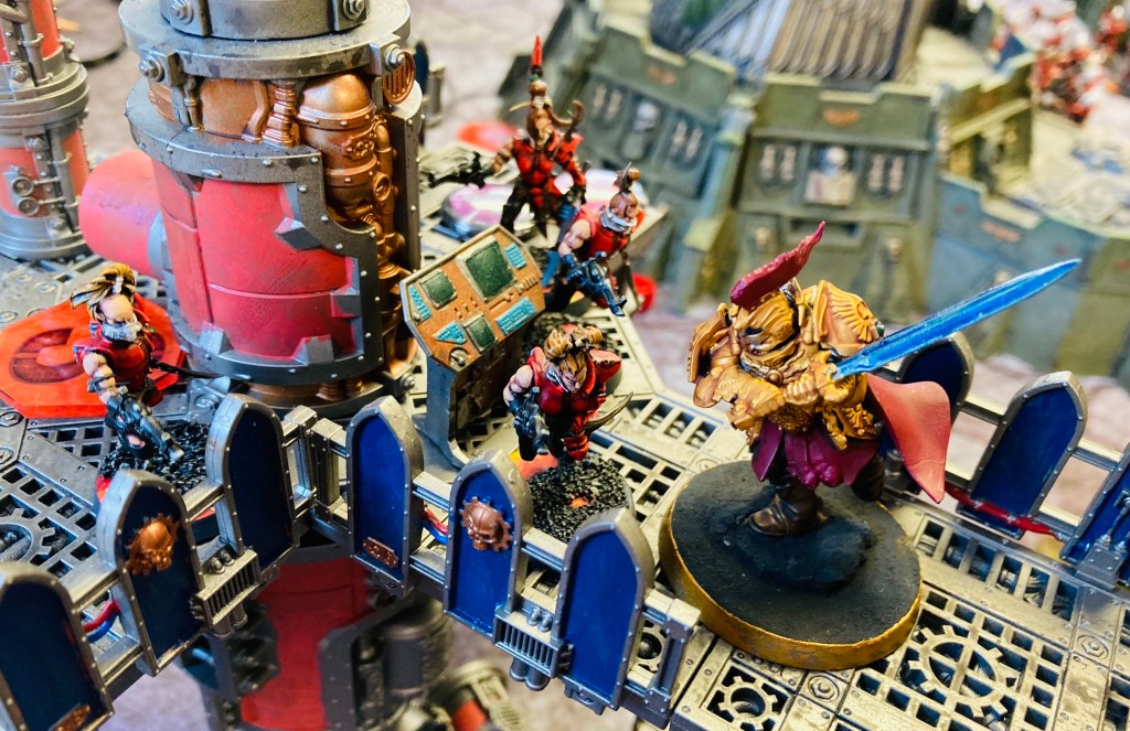 The armored mon-keigh however proved to be more than a match for the remaining wyches that accompanied Archon Vÿr’s raid. A group of them were fighting atop an industrial structure, and the limited space for mobility made the lightly-armored fighters easy prey for one of the mon-keigh’s deadly swordsmen.
