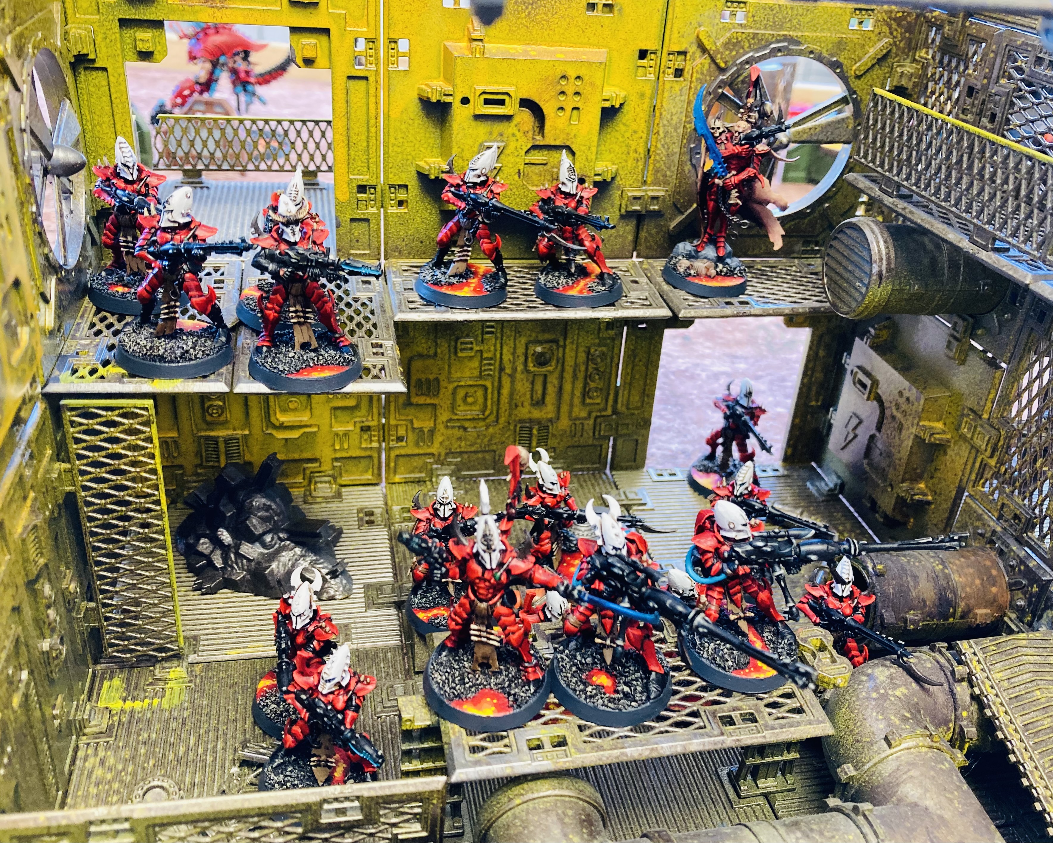Still riding high from victory, Archon Vÿr took his forces to raid some mon-keigh industrial facilities, and take more prisoners. His Kabalites were echoing his elevated spirits, plunging into the buildings and fighting to assail the victims within with gleeful abandon.