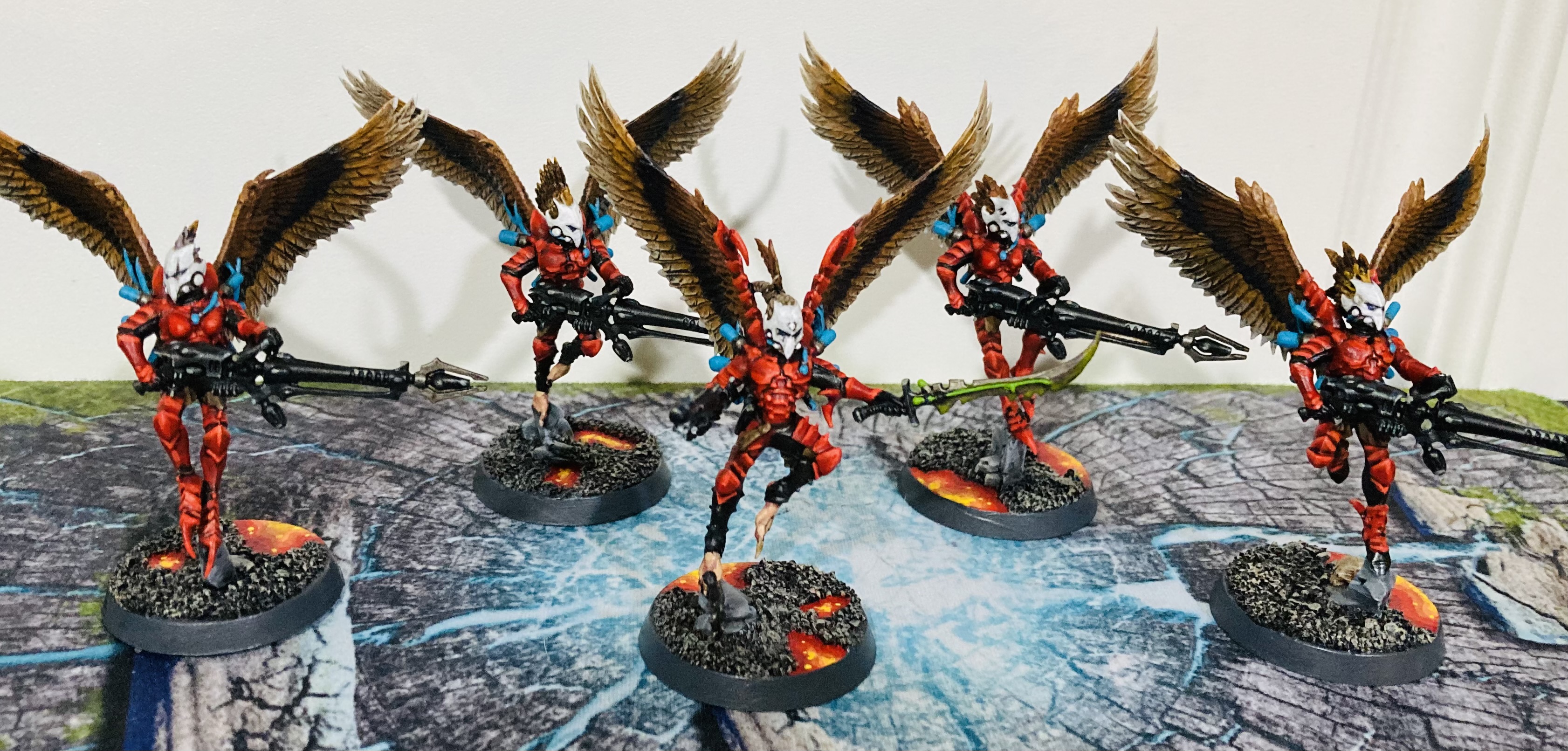These Drukhari Scourges with Haywire Blasters were a lot of work to paint. Especially the wings. They took a lot more layers and blending than I normally do, and I’m really pleased with how they turned out. The effort was worth it, and while that slowed down my painting progress I’ve loved to see them on the table. Of course, they’ve been entirely underwhelming with their weapons hah. And their survivability is just the pits. So I’ve got to work on tactically supporting them better and positioning them in ways that they can be useful but not exposed.