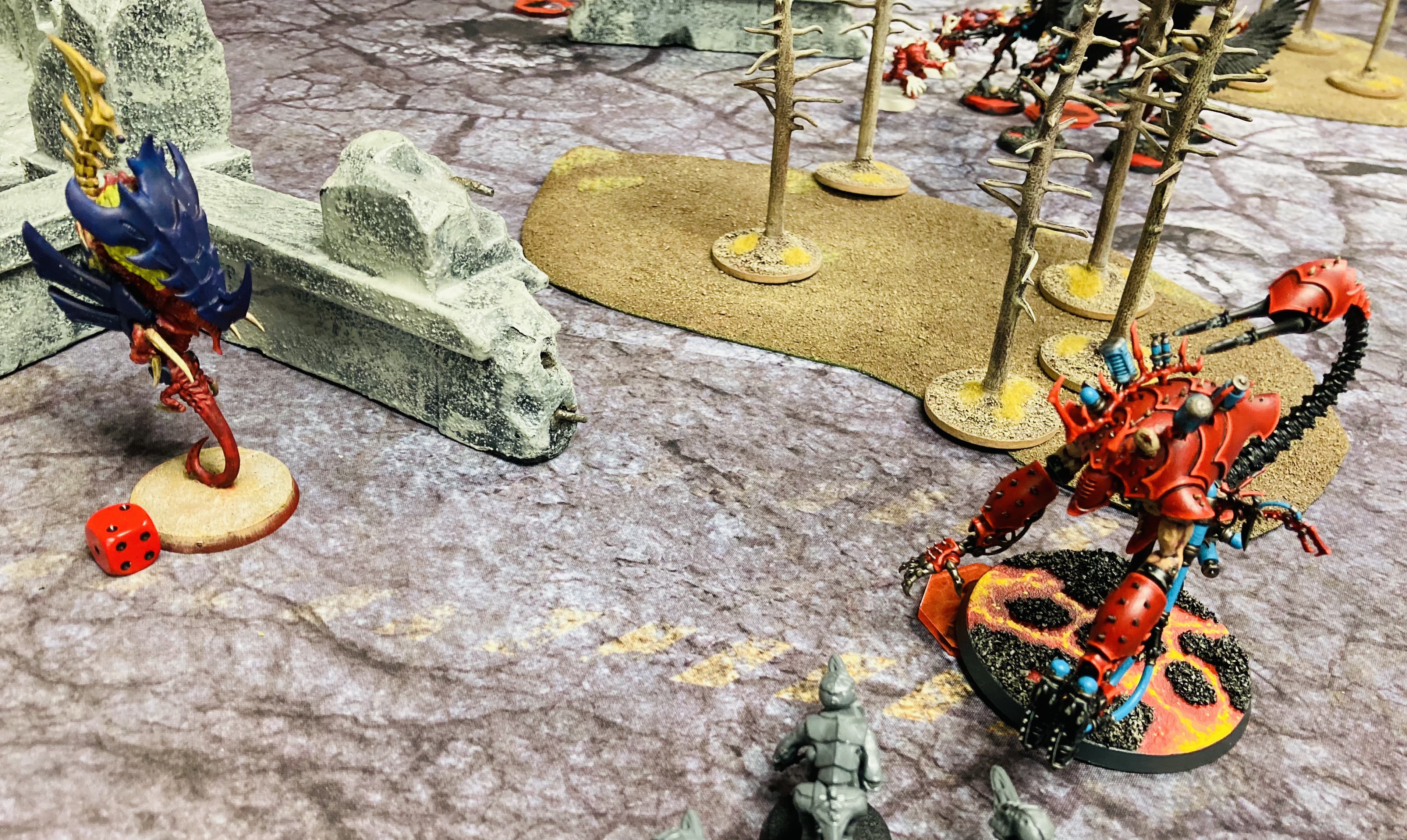 Meanwhile Haemonculus Oribraq was much more cagey with his forces, knowing just how violent and savvy the Tyranids could be. He committed his Talos pain engine to take out a massed group of Termagaunts and drive the attack into the Neurothrope behind the force. Disposable pain beast were better to commit than other warriors in this case, as the stinging attacks of the Tyranids surely took their toll.