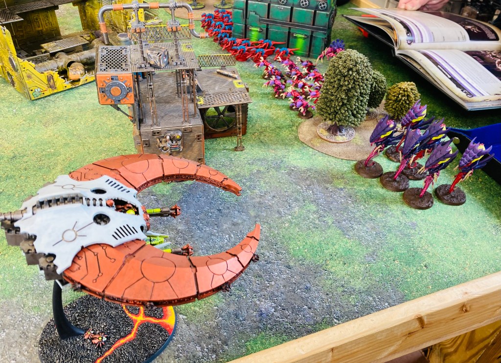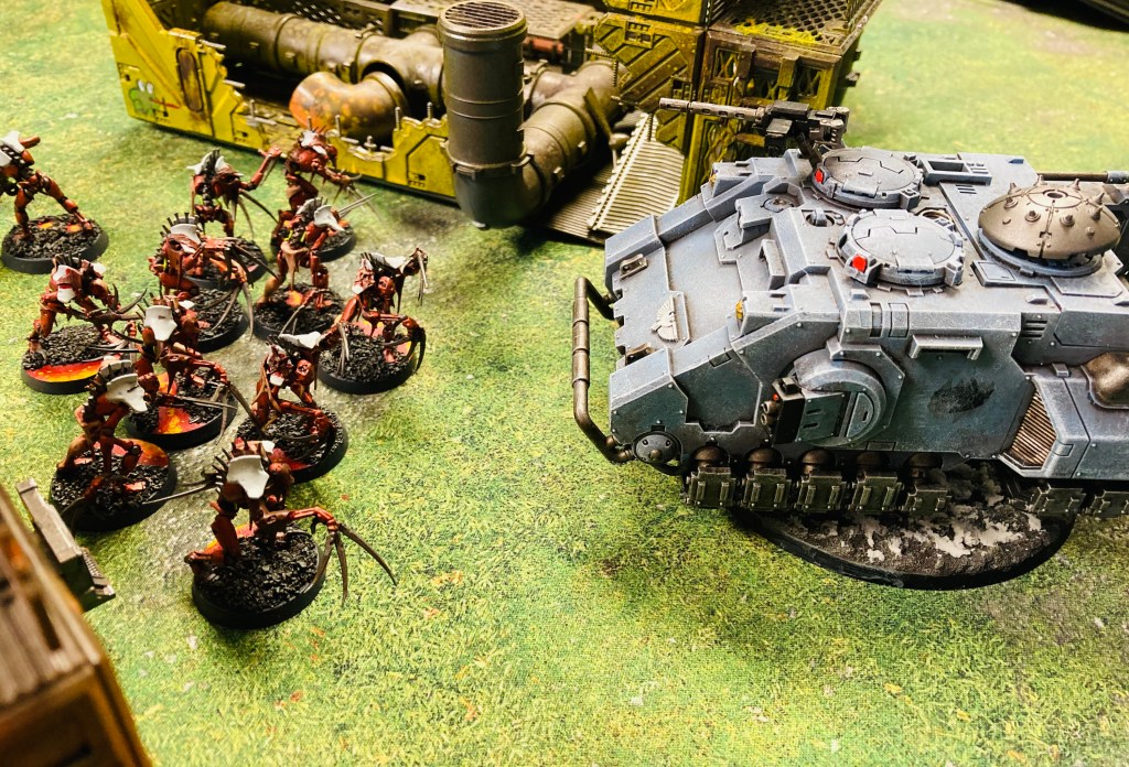 “So many… unclean… biologicals…” said Nemesor Sebekh out loud, choosing to emphasize his ire by deploying his vocalizers. The group of Warriors next to him stood at attention, barely understanding the words he said. They were not part of their war-programming, so just washed over the near-mindless rank and file. Across the battlefield was a massing swarm of strange bug-creatures.