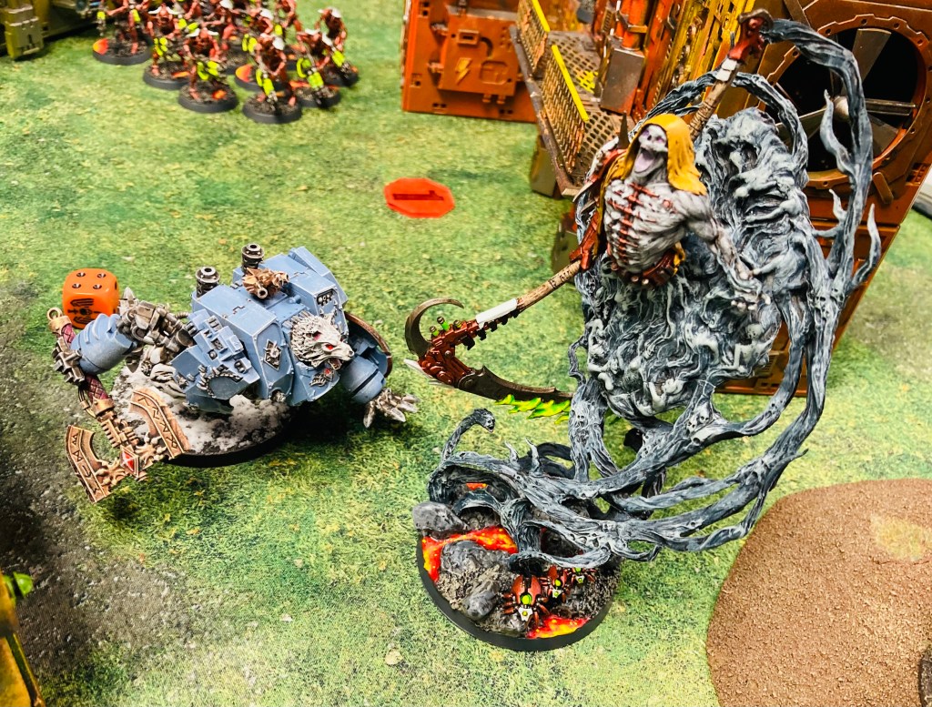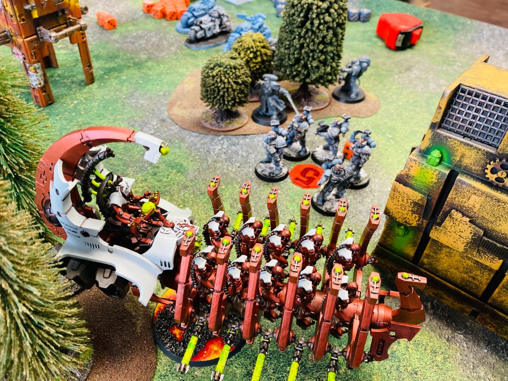 His initial forces sallied forth to delay their attacks, including even his Canoptek Reanimator sacrificing itself to slow down the vanguard of the approaching force. The armored warriors fought well and with what he presumed they would describe as “heroism”. But their defenses and protection meant that they moved slowly. As long as he fed their jetbike unit things to distract them and whittle them down, he would have time for the search.