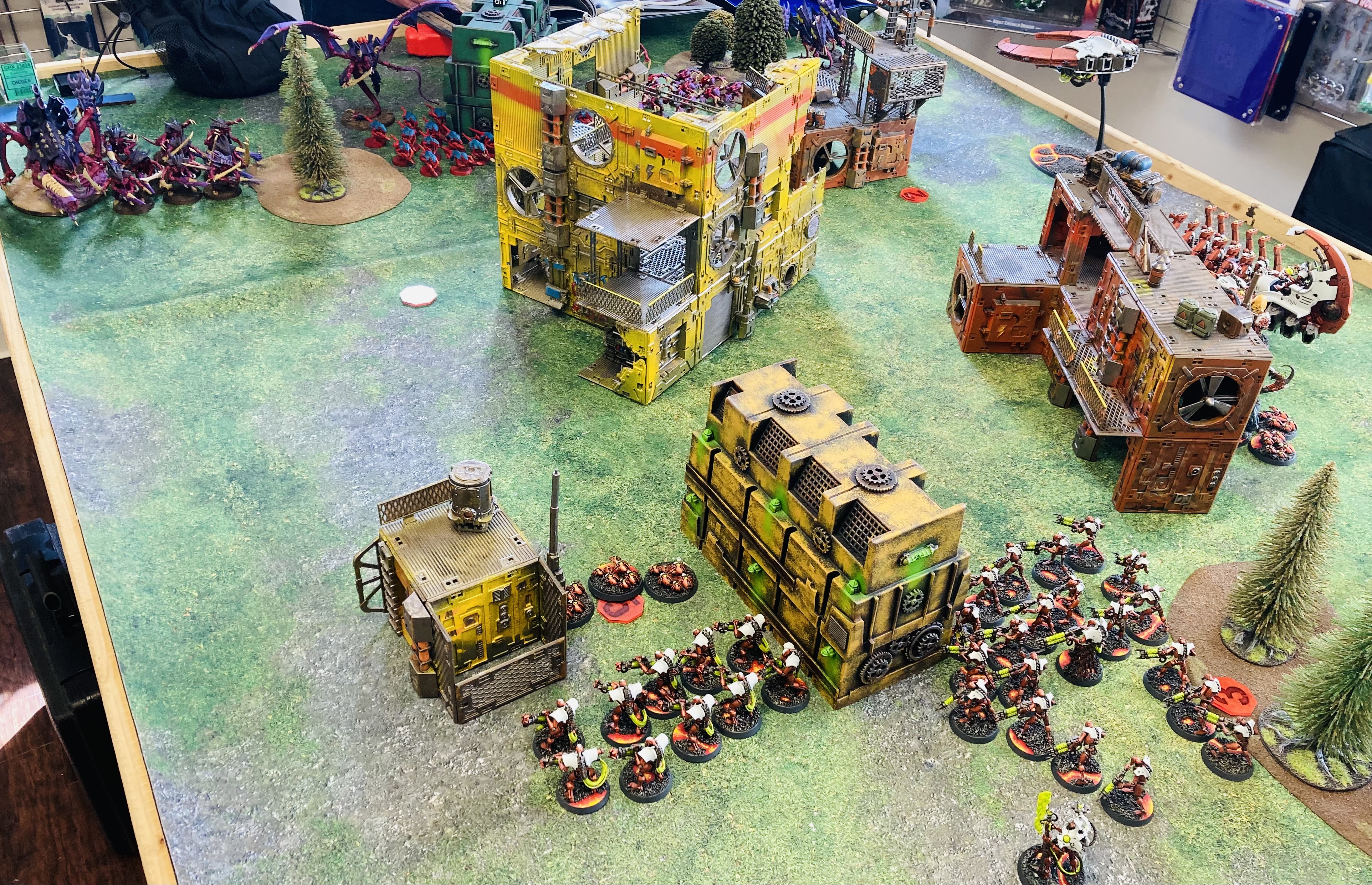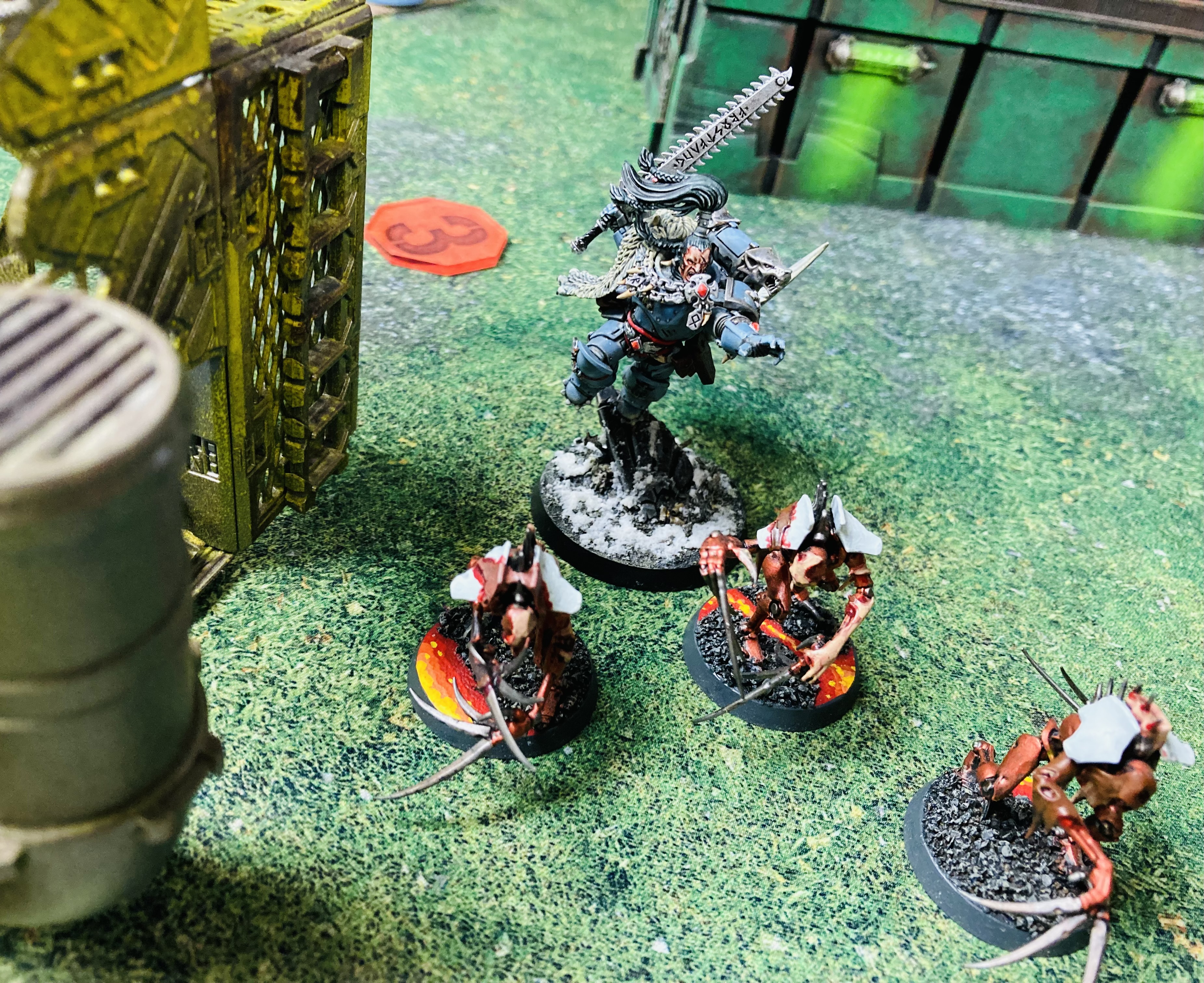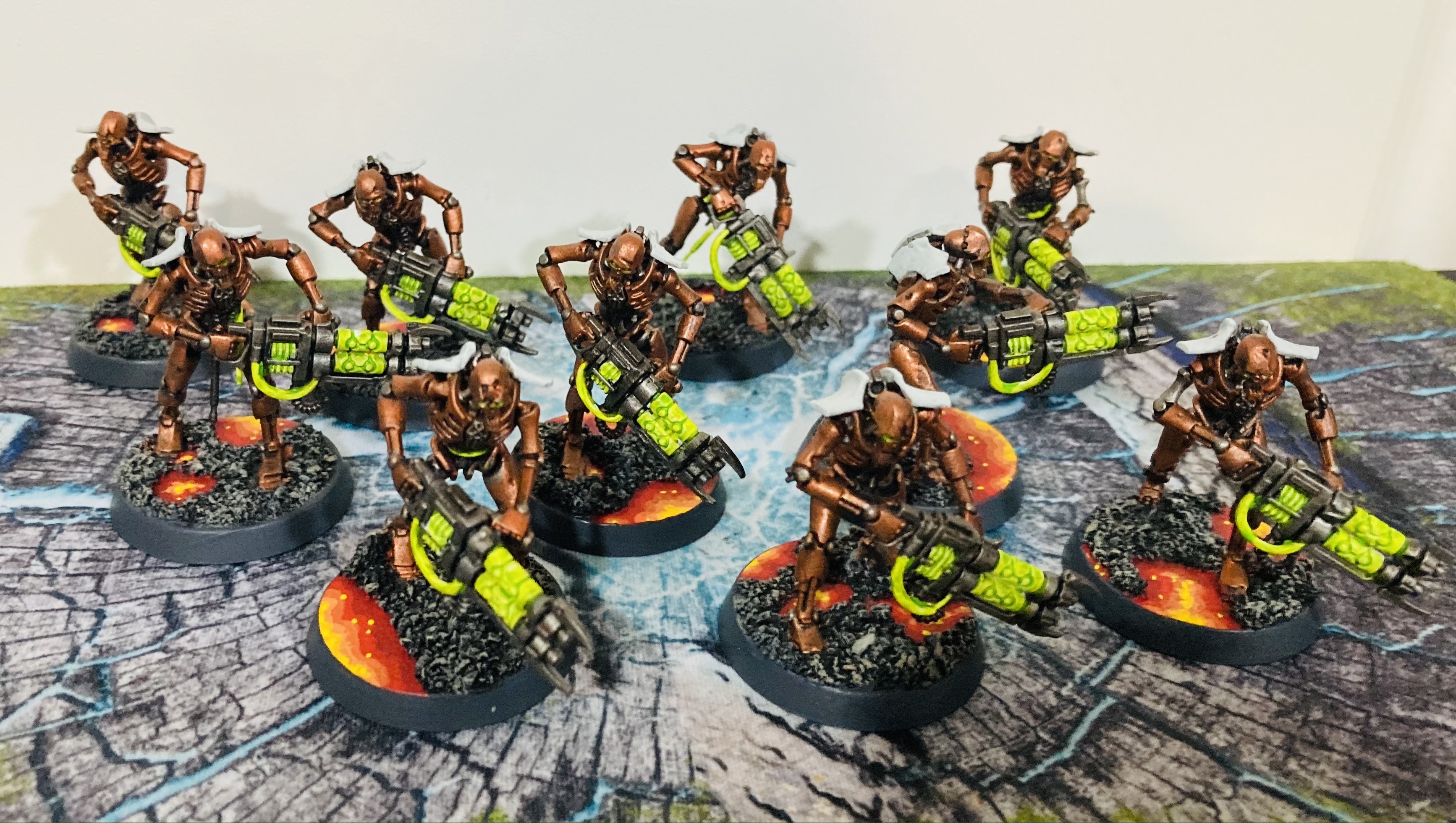 “So many… unclean… biologicals…” said Nemesor Sebekh out loud, choosing to emphasize his ire by deploying his vocalizers. The group of Warriors next to him stood at attention, barely understanding the words he said. They were not part of their war-programming, so just washed over the near-mindless rank and file. Across the battlefield was a massing swarm of strange bug-creatures.