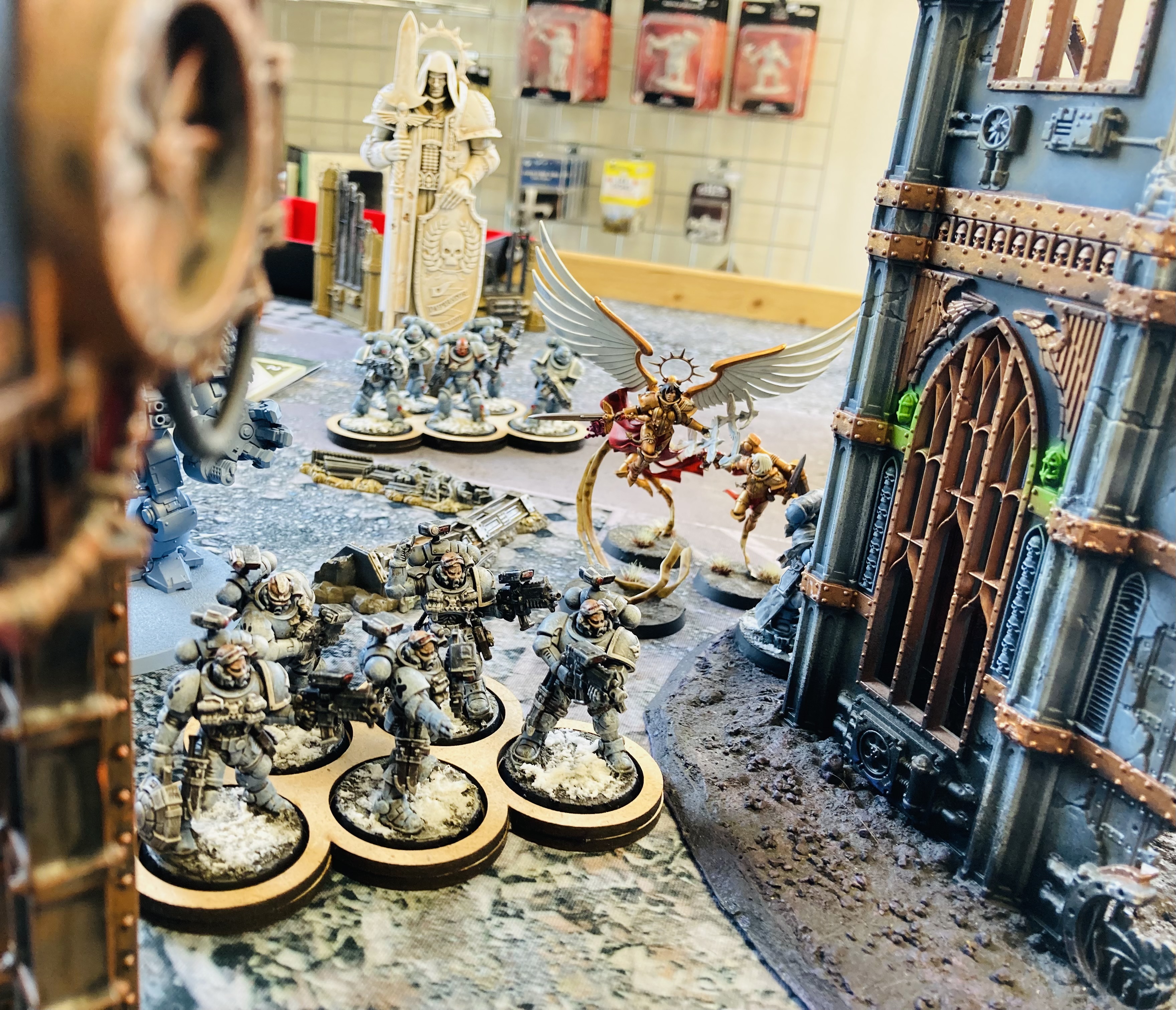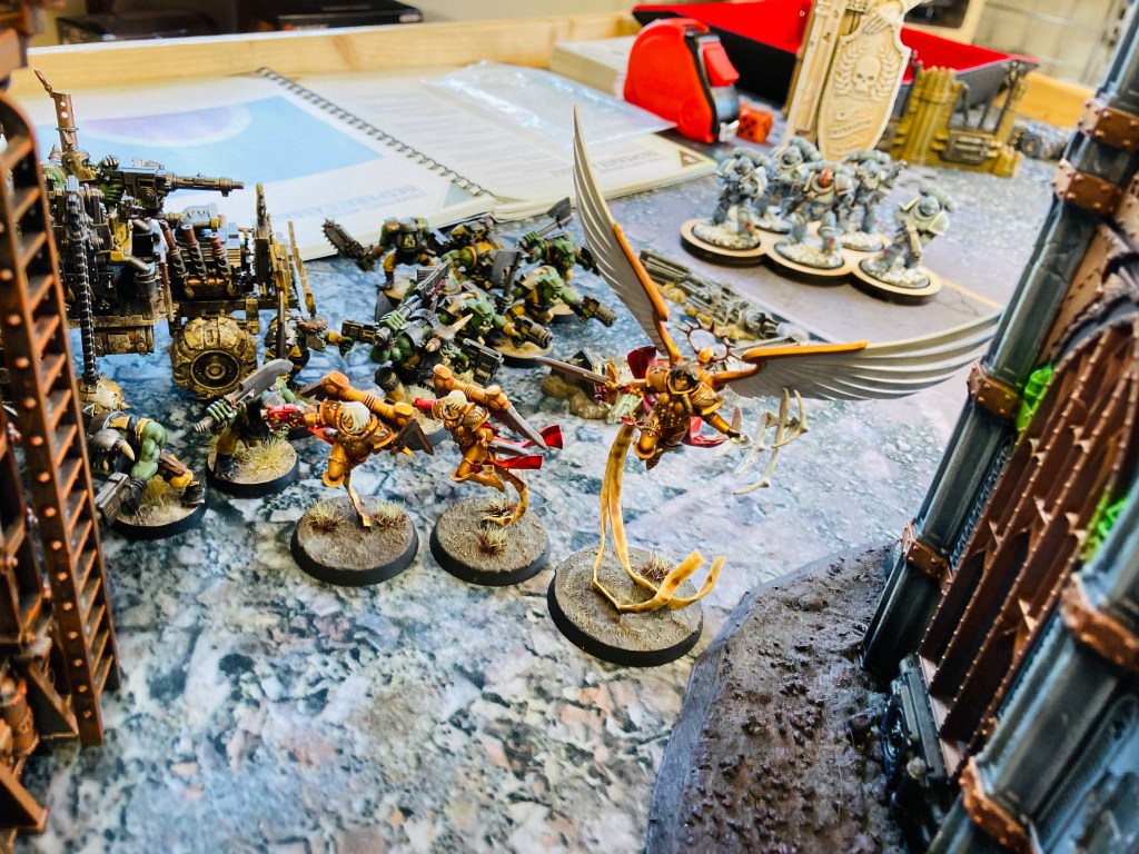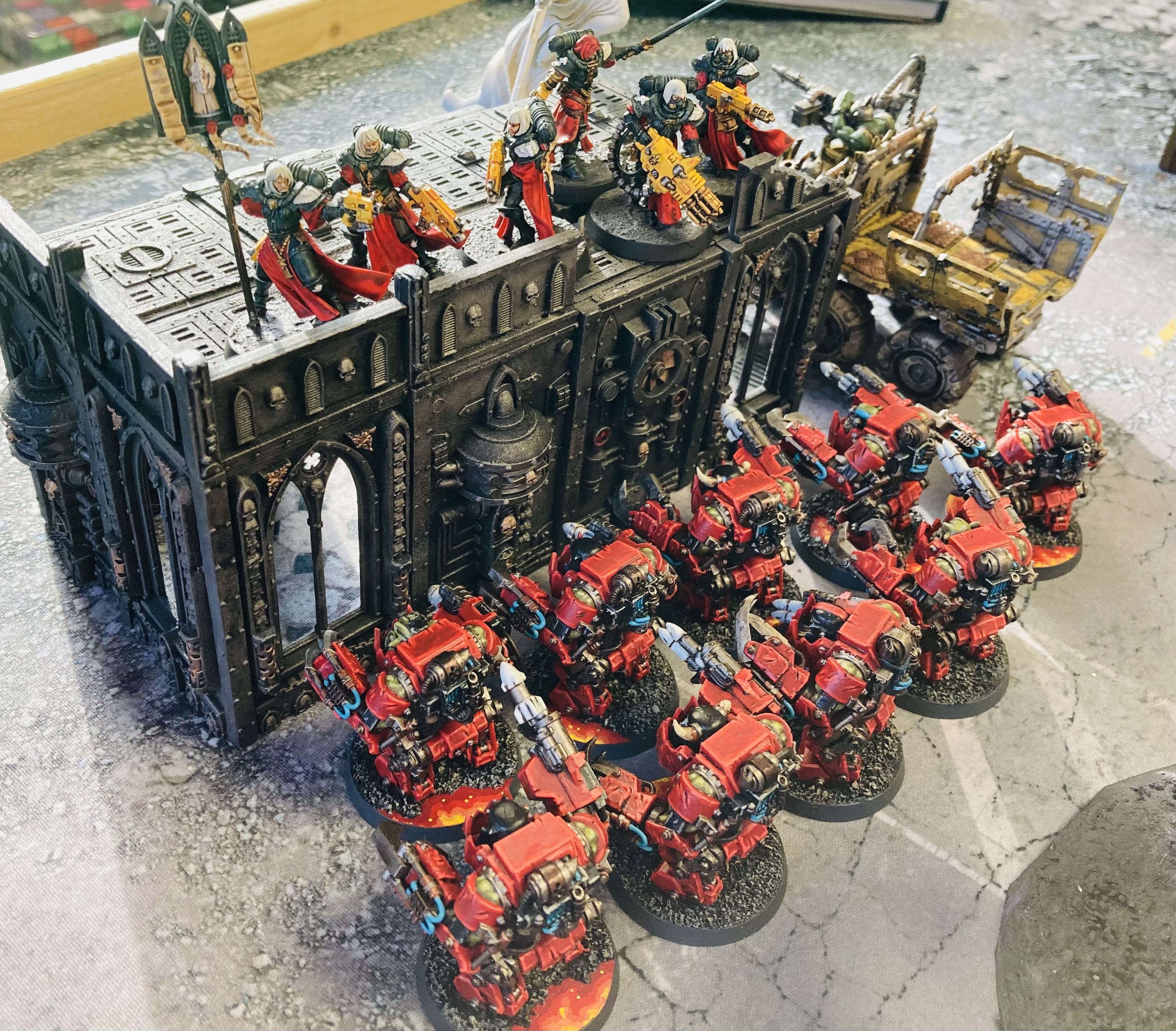 The Adeptus Sororitas was also helping close the net, with squads of Battle Sisters and their deadly Paragon Warsuits taking the more defensive posture with firepower. They finished a set of vows that the holy shrines celebrating their most valiant martyrs and heroes would not fall to the Ork predations on their watch: burning incense, lighting candles, and general other offerings to the Emperor. As the husks from the burnt offerings drifted on the wind, they marched forward toward the Ork line.