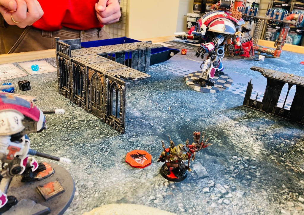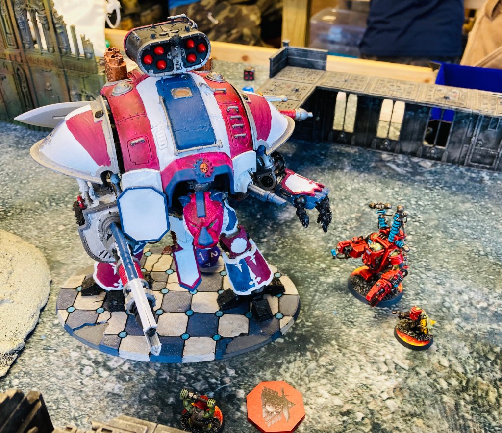 Unfortunately for ‘Eadfragg he didn’t quite grasp the tactical situation, nor did he see the Armiger Helverin approaching him from behind and ranging in its twin autocannons on his form. With a blast of rapid shells, ‘Eadfragg’s celebration quickly became a situation where his grot orderly was dragging his shattered body away from the smoking crater that remained.