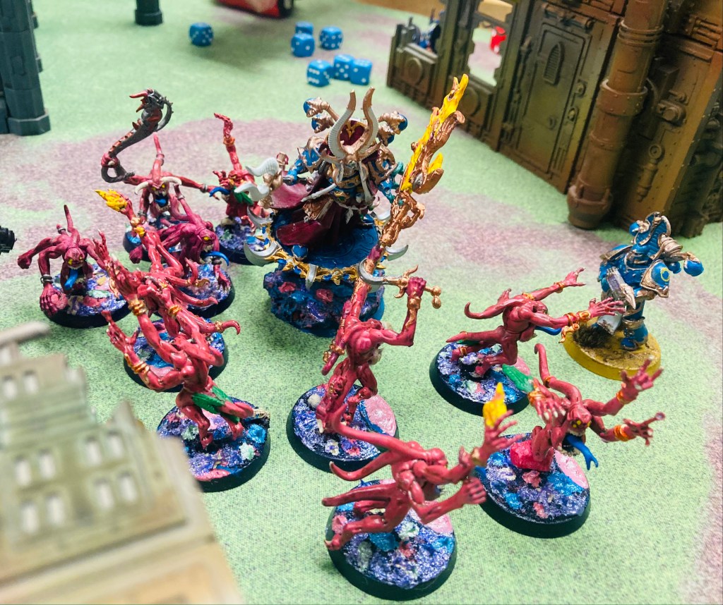The portents were constantly shifting for the Thousand Sons, those ancient warriors of Tzeentch who walked in suits of hollow, dust-filled armor. So many forces were vying for the Scylla system the fates continued to flux–sometimes something that was the right move would suddenly be something to be avoided at all costs when casting their divinations. Their chief sorcerer had even summoned a group of pink horrors to help advise him in where their force should strike next. For the moment, it showed that the Orks were a particular threat: they had attacked and dealt a serious blow to the allied Chaos Knights that were supporting operations in the system. The Orks were indeed a perpetual nuisance, their very chaotic behavior was the antithesis of Tzeentch’s careful planning and decades of schemes. Stopping their random behavior would mean a more predictable system, which meant more of the great Changer of Ways’ plans coming to fruition.