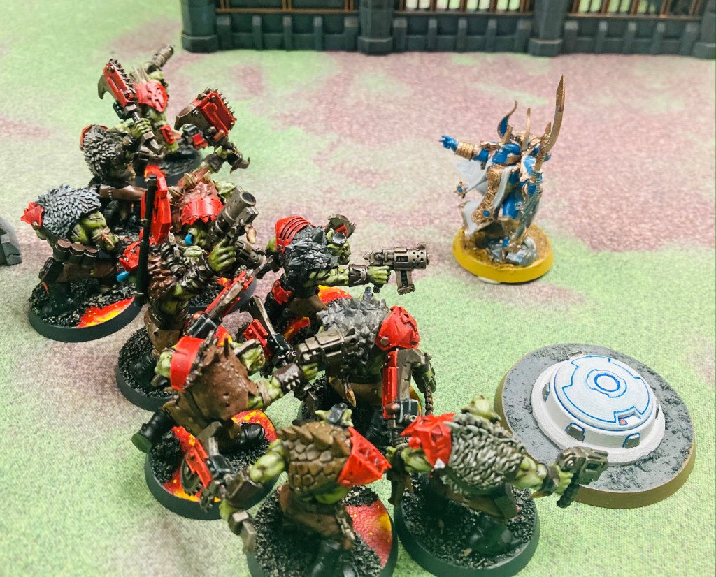 However, the Orks were too aggressive in grabbing control of key portions of the battlefield, so while their numbers thinned–and the heavy hitters of the Thousand Sons were too easily slain. Meganobz cut down a Deamon Prince, while Warboss Drazgurk himself tore apart a rampaging Maulerfiend himself. Too many losses meant a need for retreat, and the Thousand Sons took discretion as the better part of valor. Soon enough the time would be right for stopping the Orks. Just not this day.