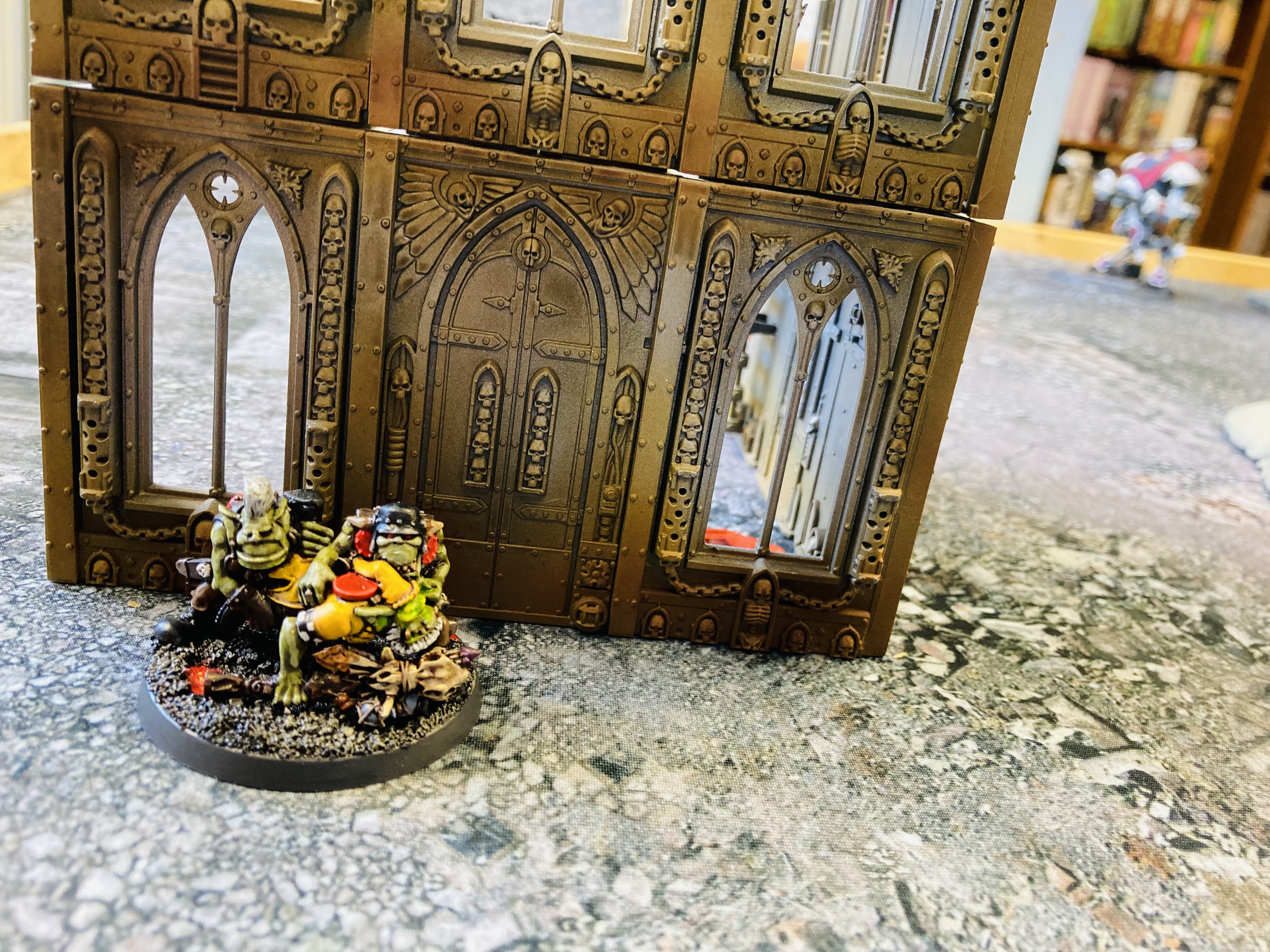 Hrukgrog and Gagrak were, in the Ork tribe, Minderz. Their job was to help their Warboss, Drozgurk, win scraps with the green energy of the Waaagh. Problem was, their Goffs clan didn’t have any Weirdboyz. The last one they had watched over blew himself up with a particularly strong discharge of energy that came out of his cranium rather than his eyes, ears, nose, and mouth–the right paths for the energy(Gagrak nearly lost his arm to the shrapnel of skull). So they took a page out of the Deathskullz playbook, and just looted themselves a Weirdboy. Amidst the chaos of the invasion of the planets, the allied Bad Moonz force that was fighting alongside them showed that they had more Weirdboyz (multiple towers full!). So Hrukgog and Gagrak just went and snatched one for themselves.
