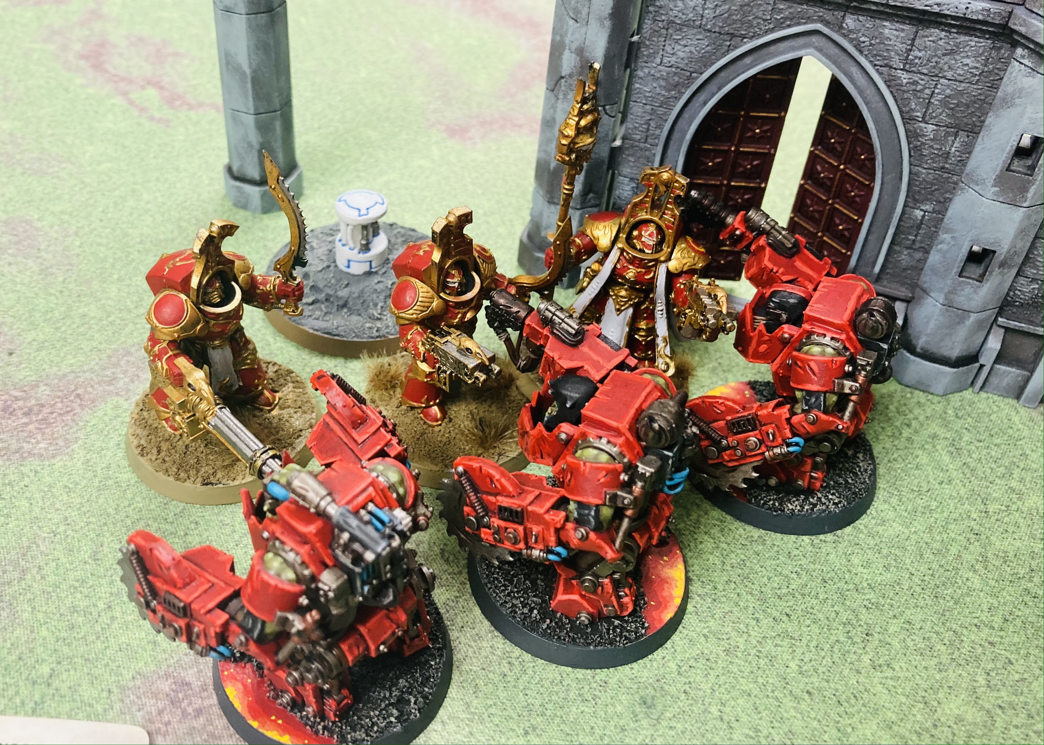 Scarab terminators teleported down onto the battlefield to support the approach, only to find themselves amid the assault of Killsaw-armed Meganobz. The saws proved to be absurdly deadly to the ancient warriors, cutting off limbs and into the central armor itself. Where there had been a full team of ten terminators, only three lived to strike back at the Orks. They managed to kill one, but the remaining two managed to slice the rest of them to pieces.
