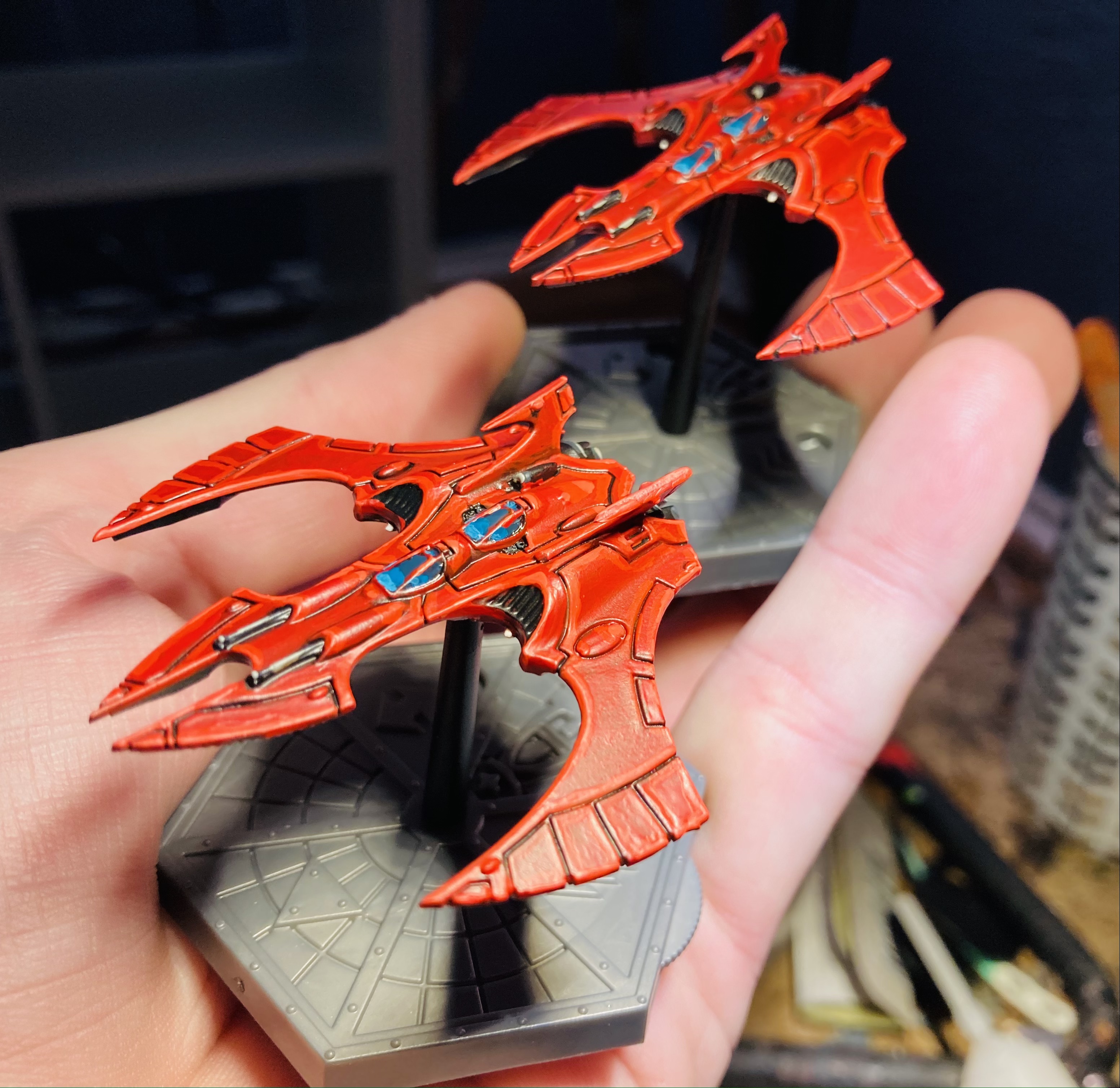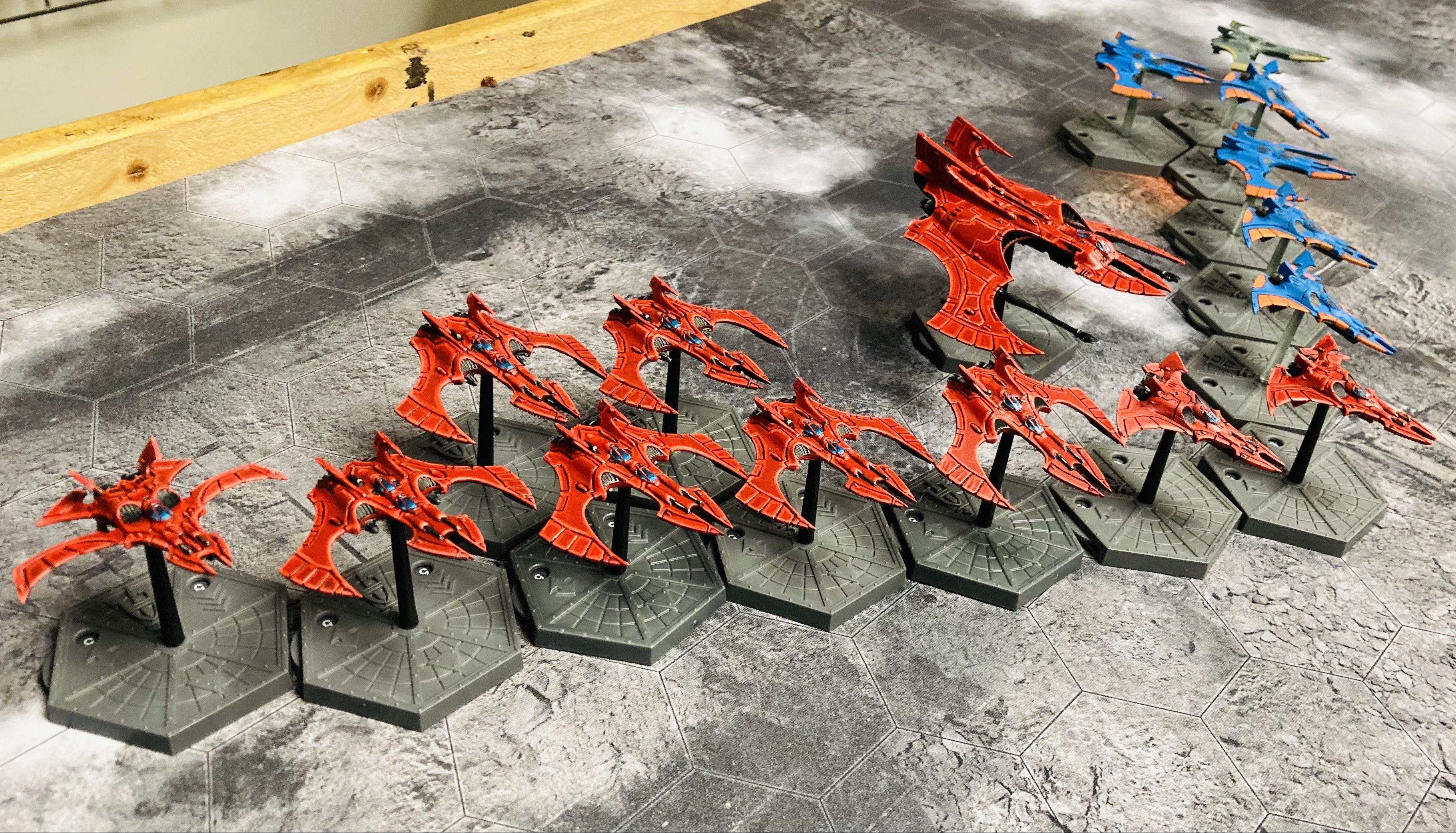 Ires managed to down a Phoenix class bomber (according to the ident computer, that was the designation), and proudly broadcast the basis of his firing solutions to the wing’s gunners at large. However, in that moment he noted just how many planes had been lost. The Aeldari first strike had eliminated too many ships, taking out as many of the Barracuda fighters as they could manage first–then turning on the slower Tiger Sharks. Diaron had already gotten the call, and was snaking their way out of the conflict space. They and a sole Barracuda managed to get free and shake pursuit. While the Aeldari had taken losses, it wasn’t as dramatic as what the T’au wing had suffered.