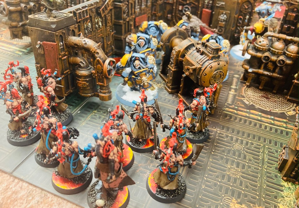 This was a regular game of 40k where my Realspace Raid took on Dave’s Ultramarines, looking for the trophy kill of his Commander.