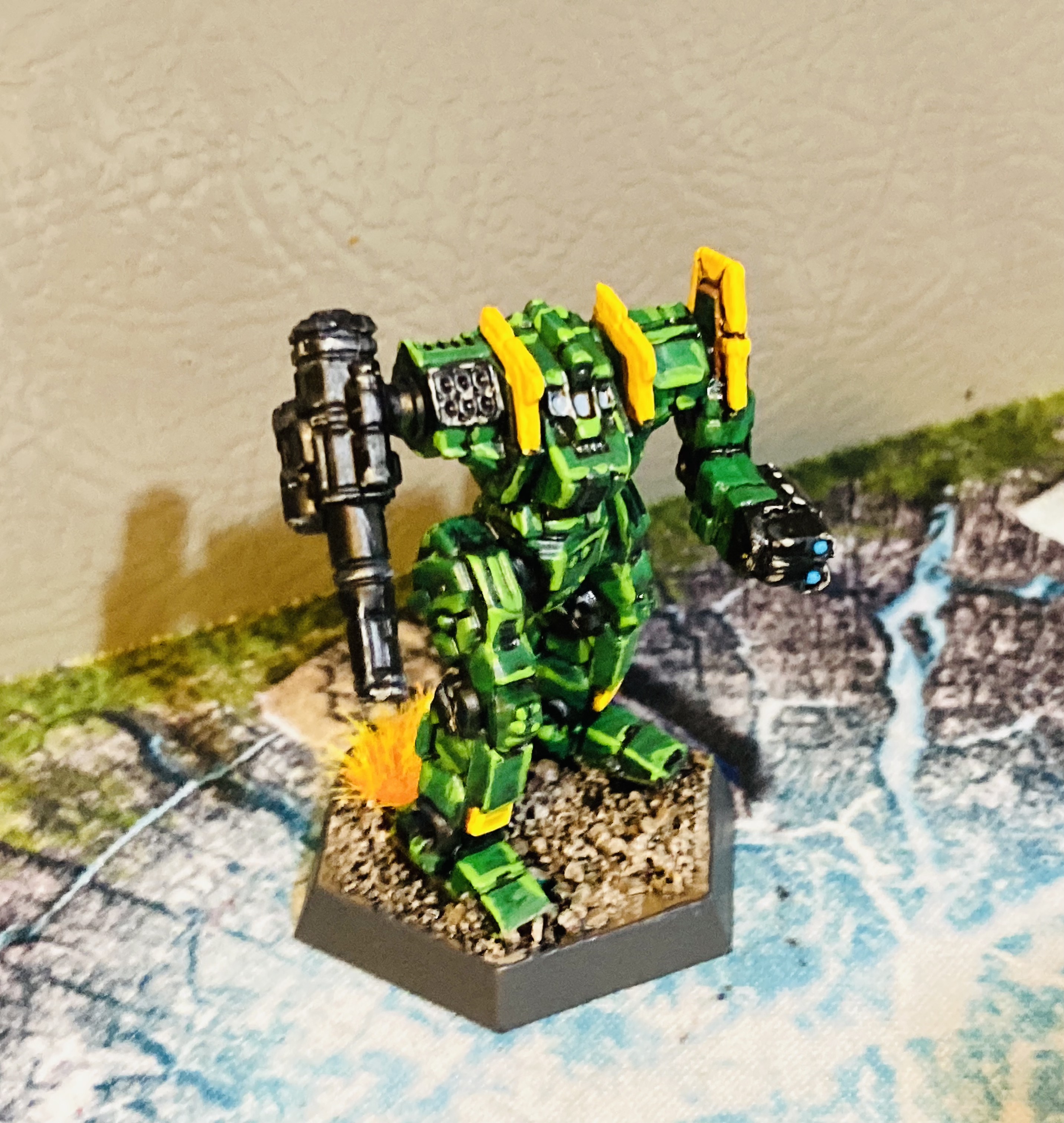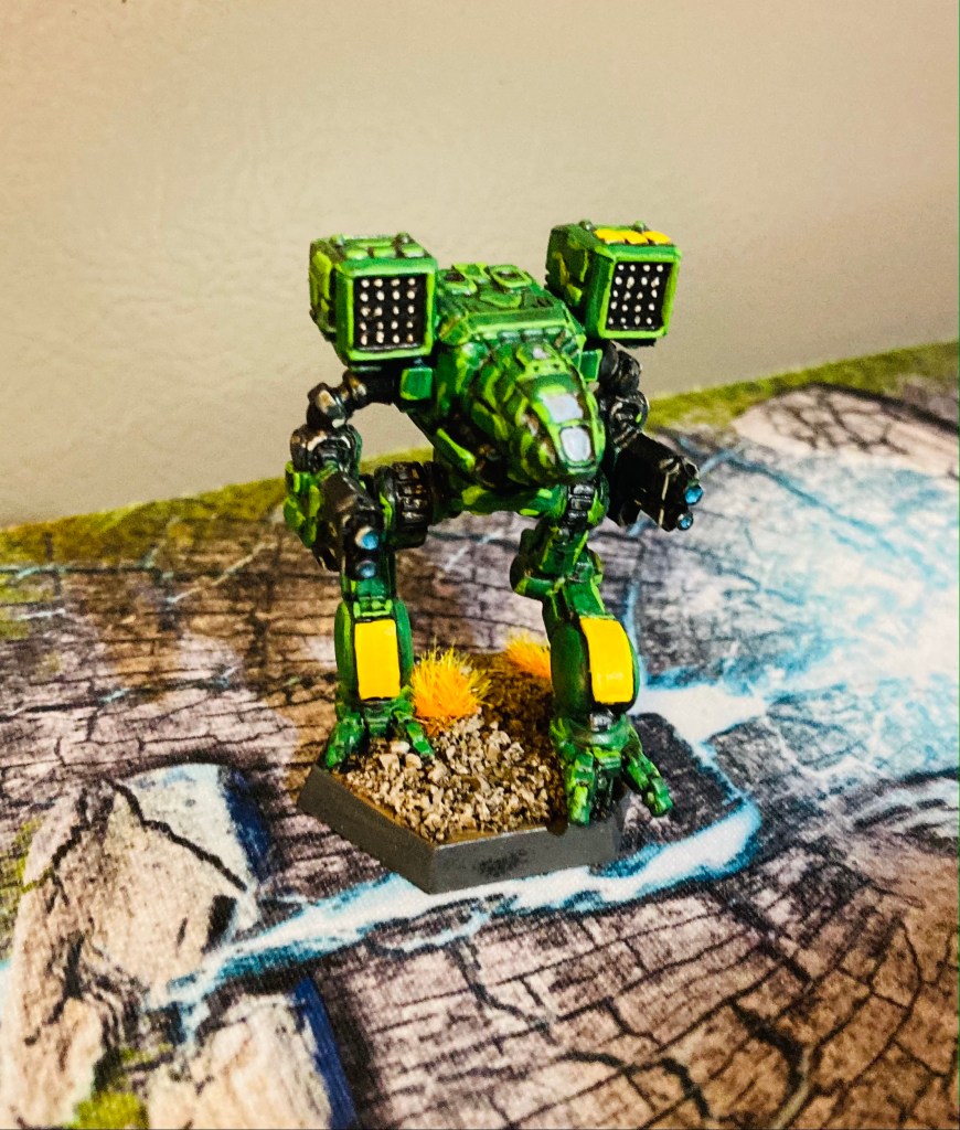 I’ve also been working on some Battletech miniatures recently, as the new models coming out for that game are finally not hideous enough that I’m willing to give it a go with my friends. I always enjoyed the crunchy style games with the hit locations, so I’m kind of keen to get into it more. I decided on Clan Jade Falcon mostly because of the cartoon show from back in the day, hah. The colors are a bit John Deere, but I dig them. I started with a base of Elementals, a Mongrel, and the iconic Clans Timber Wolf.