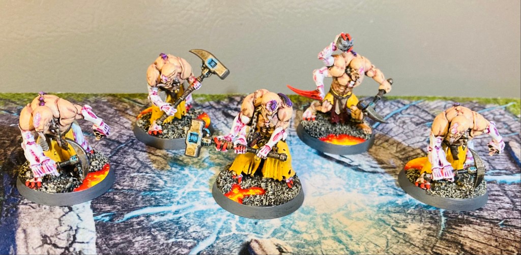Five new Genestealer Cult Abberants, and an Ironstrider Balistarii with some genestealer cult influences for my Cult of the Four-Armed Omnissiah that I want to eventually flesh out.