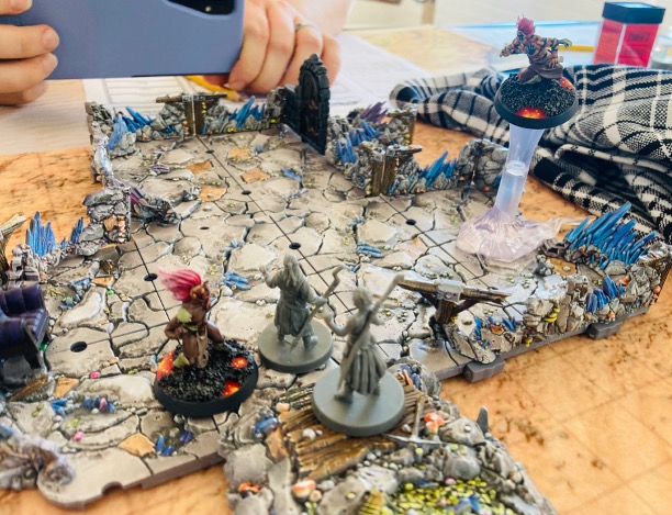 The party, feeling like the larger elf army could return at any point, fractured a bit as Marquis went one direction while Corin decided to take a different spiral stairs down. Finnja followed Marquis while Thrak-Chul followed Corin.