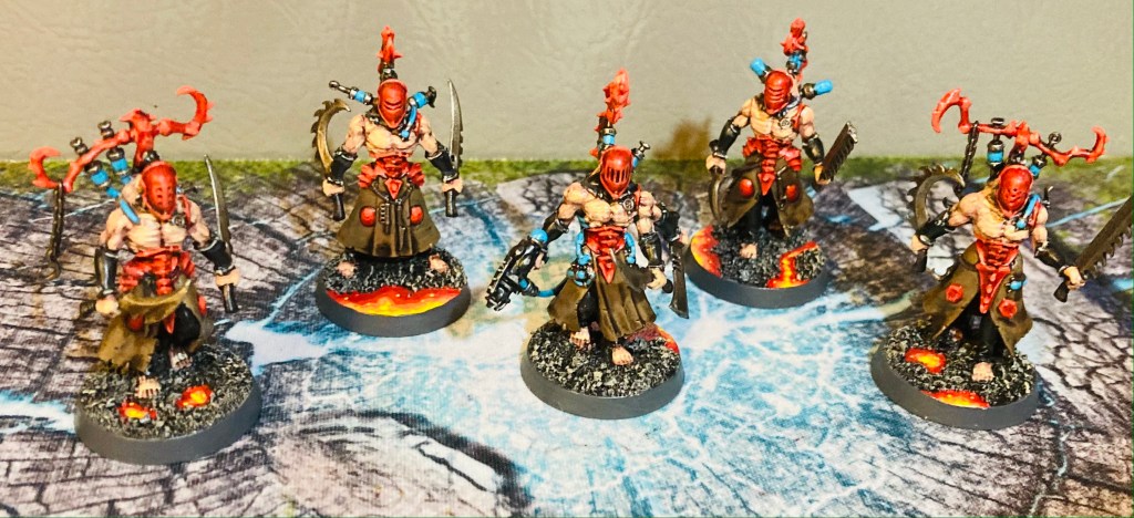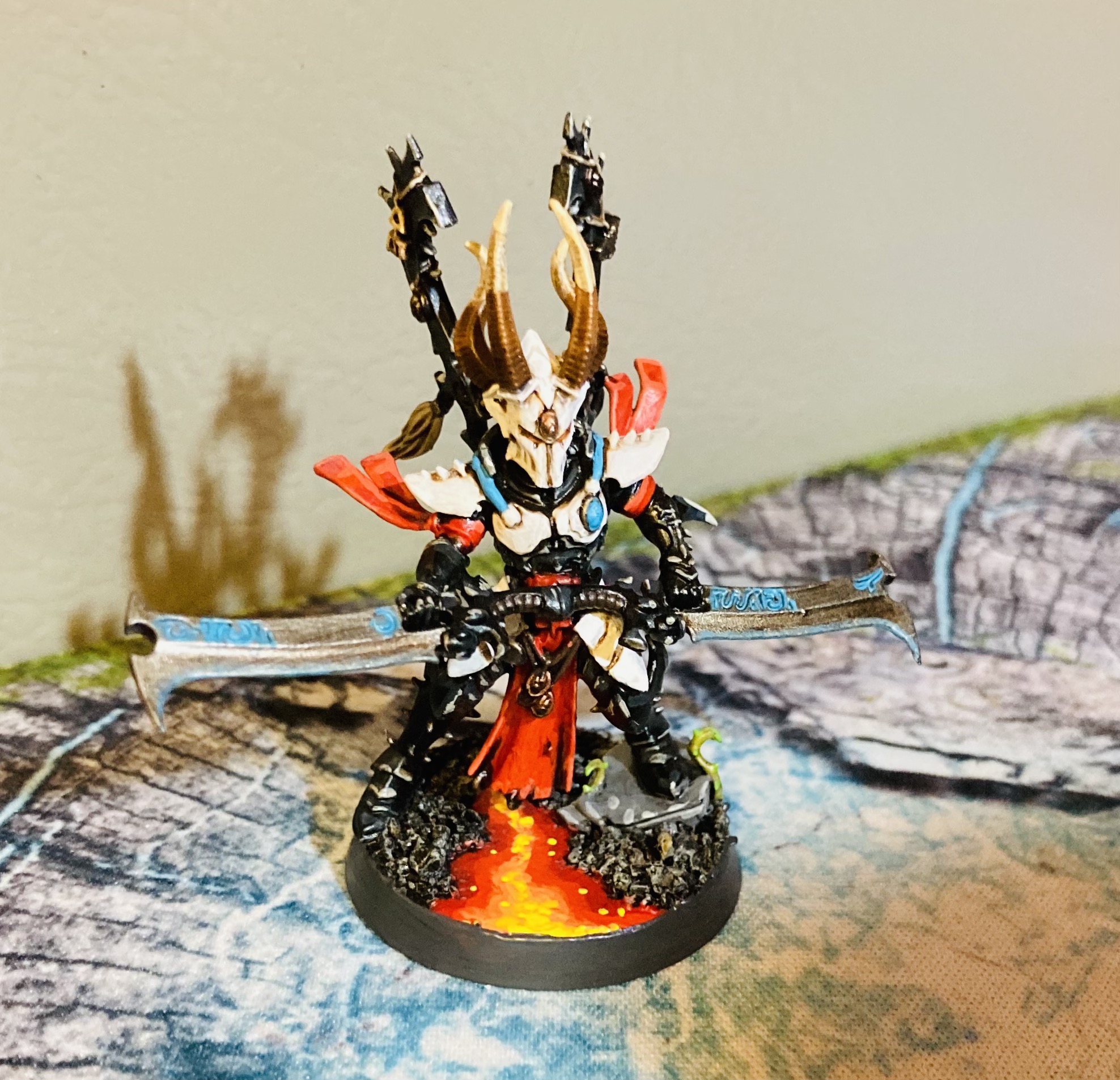 Overall I’m pretty pleased, and the full squad of five is next up in my painting queue. This is good as a start, because I’m also likely to be dabbling in a bit of Craftworlds Aeldari as I go forward, so working out the balance of aspect shrines with my own army overall colors will be a long term goal. Incubi are technically aspect warriors themselves, which is cool. So more ahead!