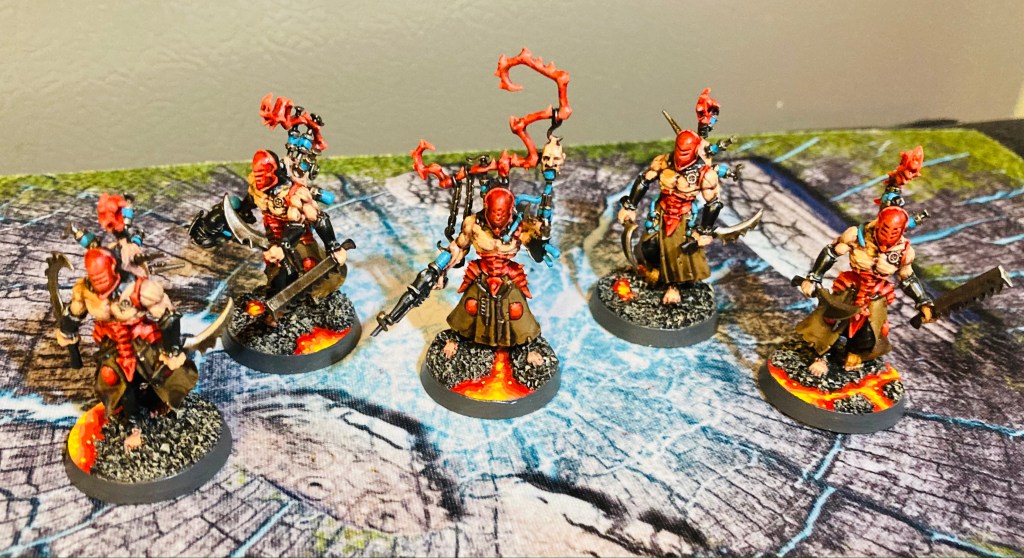 I also wanted to finally add some Incubi to my army. They’re such cool models, and great in the game. They took some thinking on how I would paint them, so I’m sharing the test model I did up below. I wanted to ensure they were mostly in black armor, and that there was enough red to tie them to the others. I saw some professionally painted models that did white in part that I really liked, so I gave it a go myself.